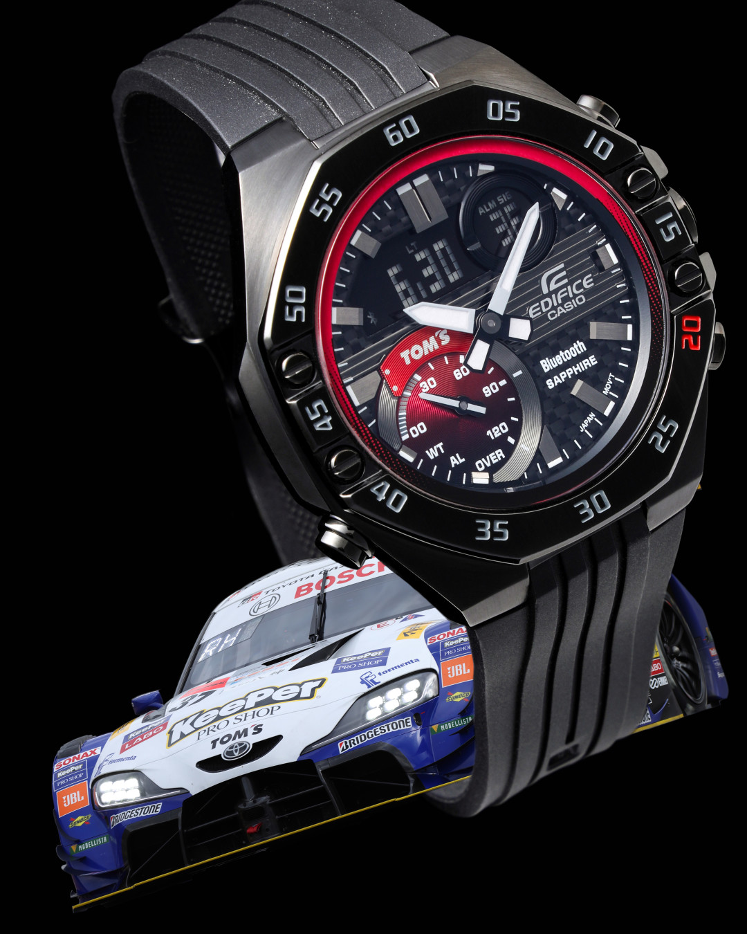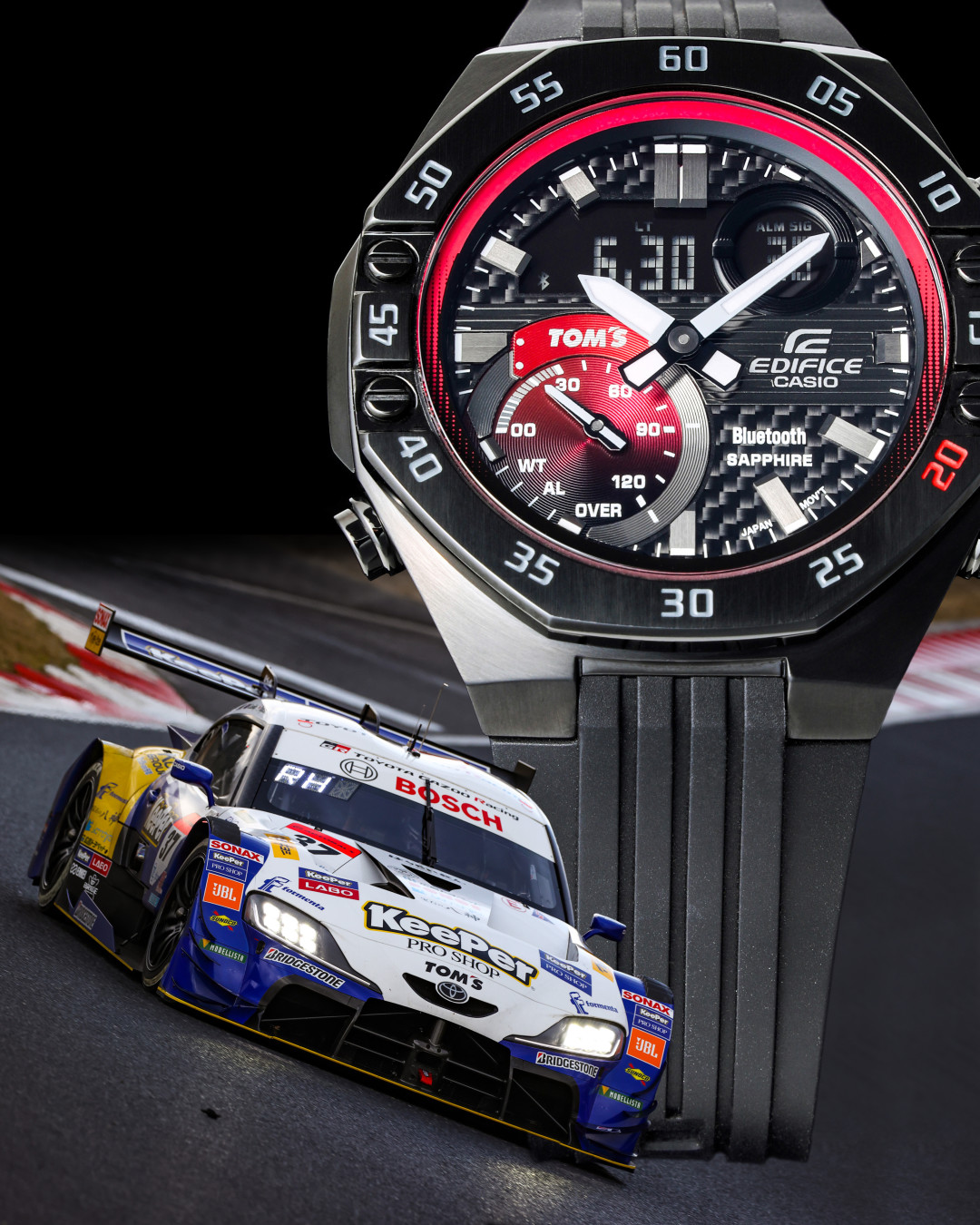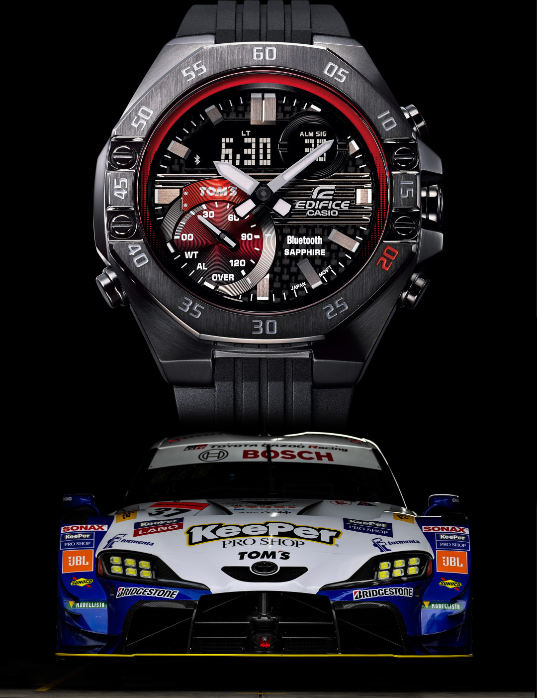 Корпорация CASIO Computer Co., Ltd. объявляет о выпуске лимитированной модели ECB-10TMS, созданной совместно с японской гоночной командой TOM’S. В Россию поступят всего 20 экземпляров этих часов.