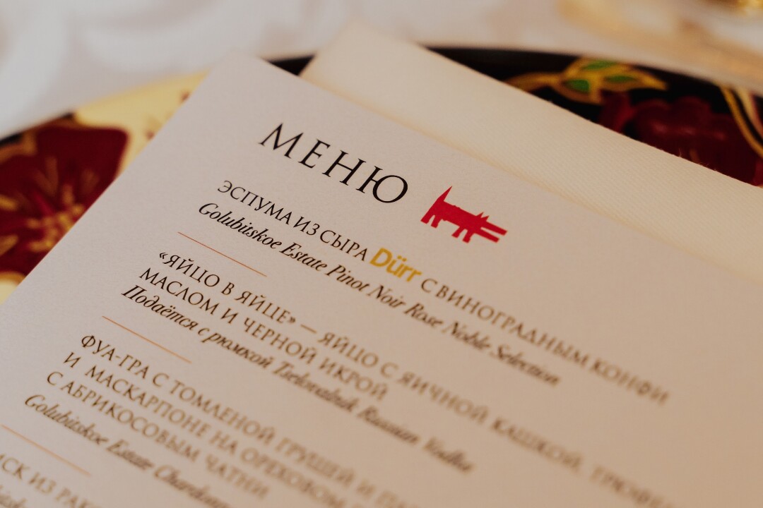 Гастрономической парой к блюдам стали вина «Поместья Голубицкого», производимые из собственного винограда — саженцы были привезены из питомников Италии и Австрии.