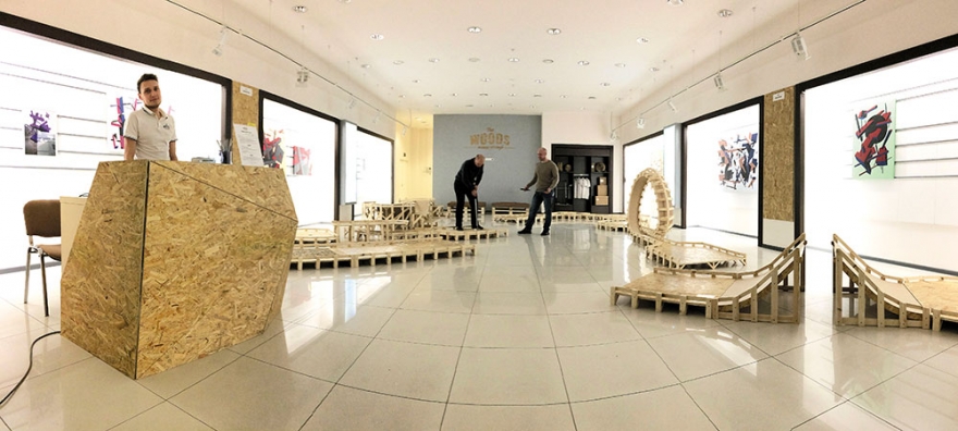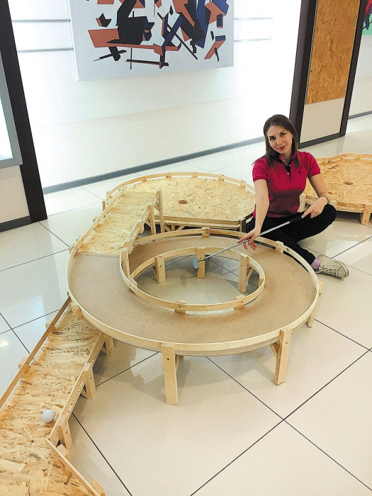 Мини-гольф. Дорожки для мини-гольфа выполнены в аутентичном деревянном дизайне с нестандартными игровыми решениями. Это собственная интерпретация гольфа для города, причем локация действительно стильная – авторские экодорожки дополняют абстракции на стенах от красноярского художника Алексея Шидловского. Сейчас в The WOODS действуют шесть дорожек, еще три находятся в разработке. Здесь есть клюшки для левшей, правшей и детей. Игрокам выдаются персональные карточки, чтобы вести учет ударов и составлять турнирную таблицу. В The WOODS можно устроить веселый день рождения и активный корпоратив. К увлекательной игре добавлена возможность организации банкетного стола.