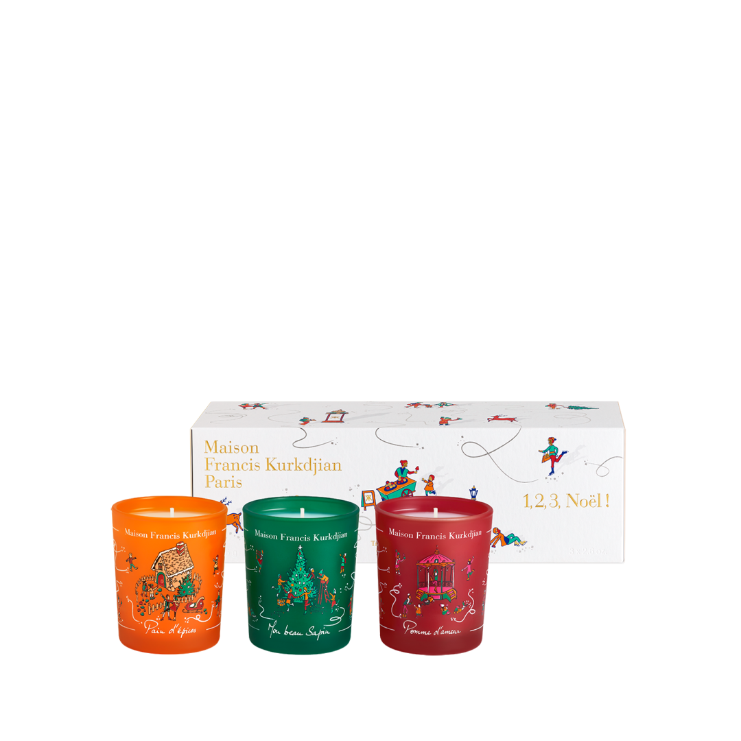 Maison Francis Kurkdjian выпустил специальную новогоднюю коллекцию. В нее вошли парфюмированные свечи и несколько наборов с ароматами. Среди запахов — древесные, цитрусовые цветочные, амбровые, хвойные.