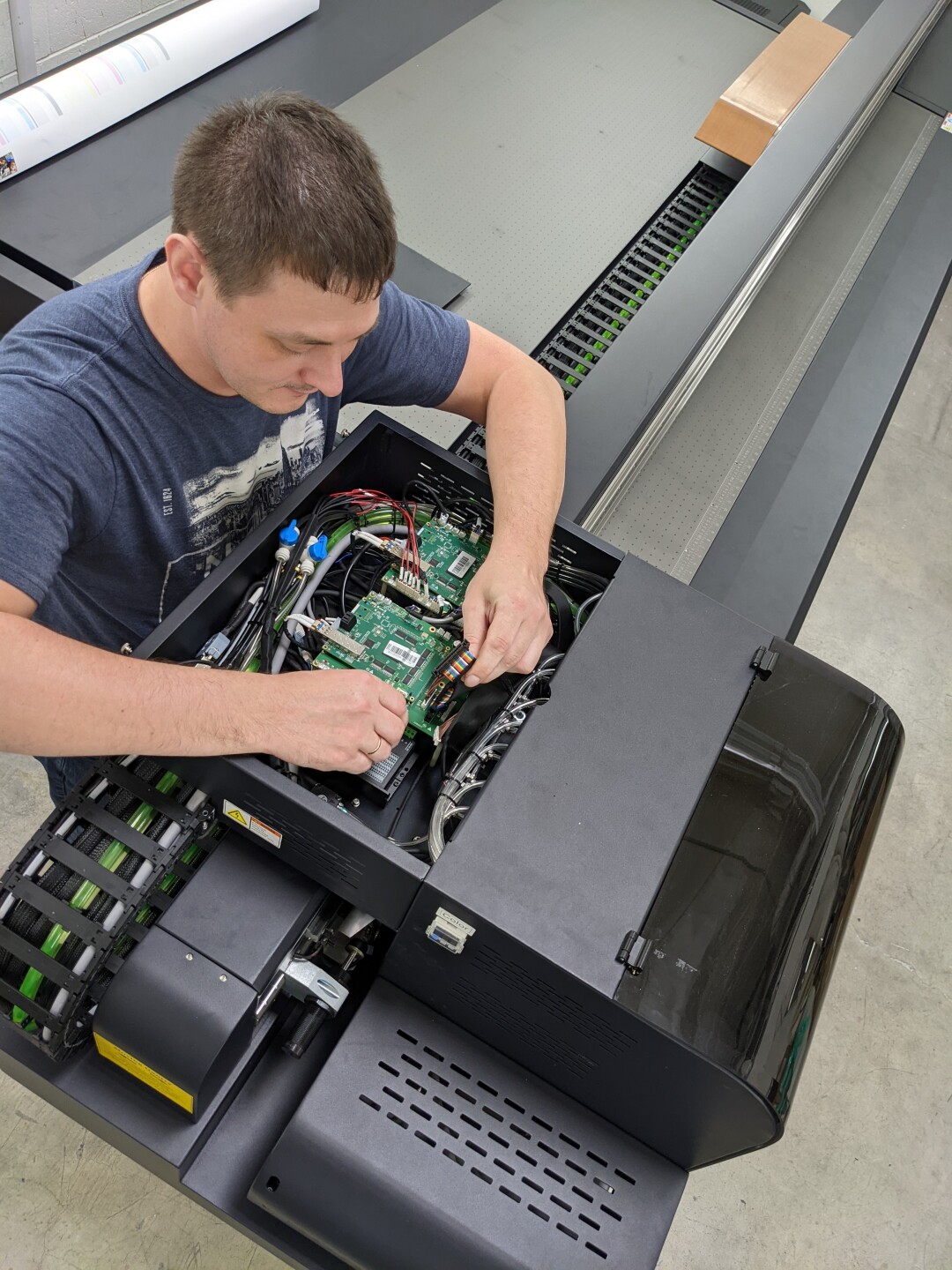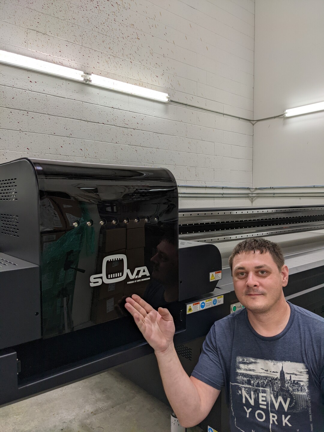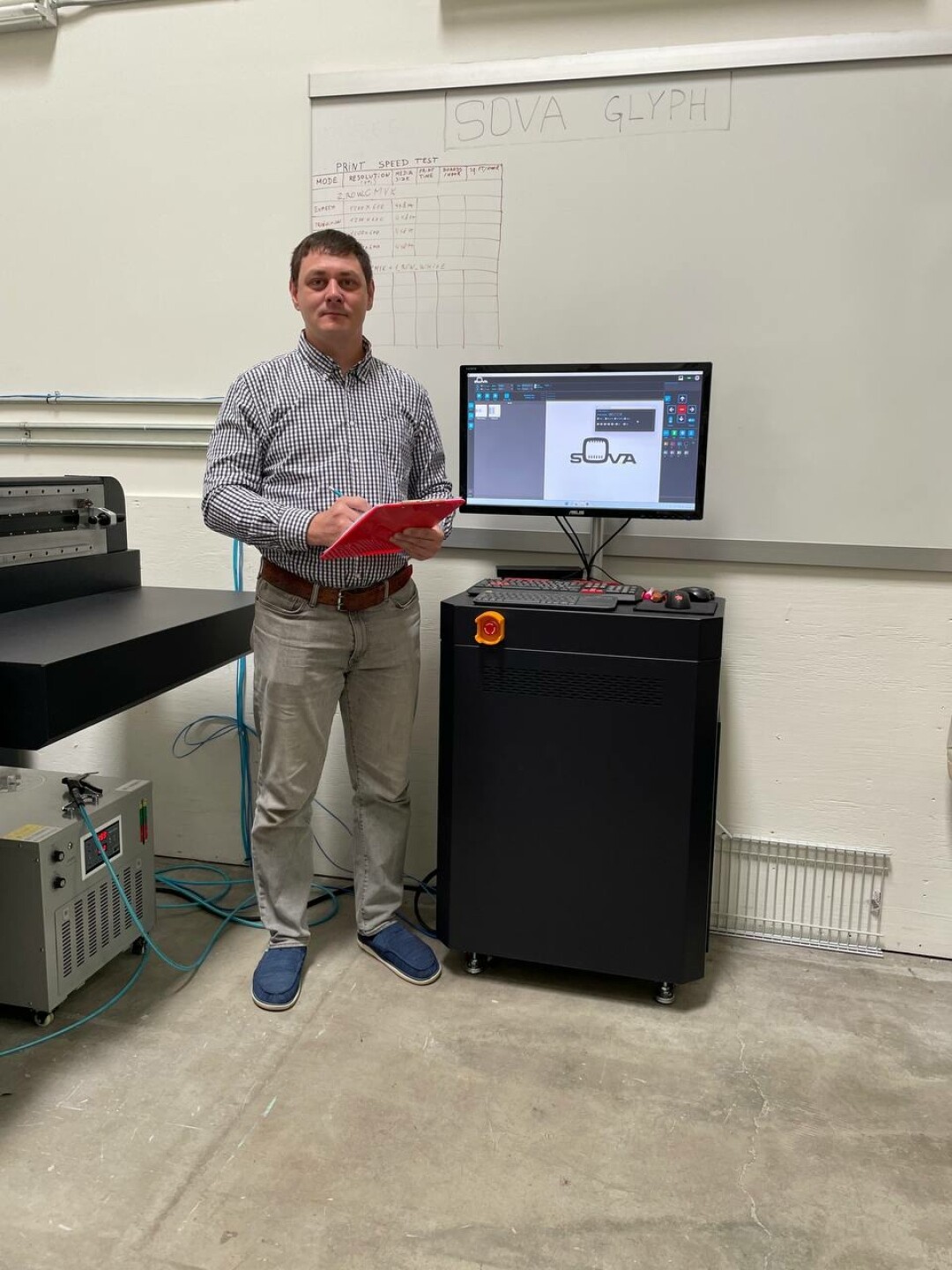 В течение предыдущего года я приложил все усилия для создания широкоформатного планшетного ультрафиолетового принтера под собственным брендом, в этом мне помогла компания CMYK Engineering. Работа над проектом продолжала весь прошлый год, и в результате мной был разработан дизайн корпуса, интегрированы электронные компоненты и написано программное обеспечение для управления узлами оборудования. Корпус принтера, по экономическим причинам, собирался на одном из крупных заводов Китая, а вся остальная разработка, интеграция и тестирование проходило в шоуруме компании CMYK Engineering. Первый прототип получил название SOVA GLYPH, принтер прошел все тесты и готовится к презентации, планируется проведение дня открытых дверей в мае 2022 года, а осенью 2022 года будет показан на крупной выставке Printing United, которая пройдет с 19 по 21 октября 2022 года.