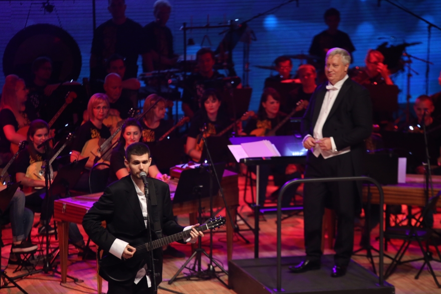 С каждой минутой желающих попасть в Большой зал становилось все больше, гости ждали заключительной церемонии. Задержка организаторов подогревала дополнительный интерес. Открыли шоу эпатажные модели с прическами от Оксаны Исаенко, а после началось большое выступление оркестра Folk-future. На разогреве был Иван Белыш, исполнявший хиты митрополита Иоанна, но публика ждала другого Ивана – Noize MС. Час ожидания равен четырем трекам и семнадцати минутам на сцене рэп-рок-исполнителя. В своих соцсетях музыкант признался, что выступление на «Этажах» вызвало у него восторг, поблагодарив за это дирижера оркестра и своего наставника Евгения Алешникова.