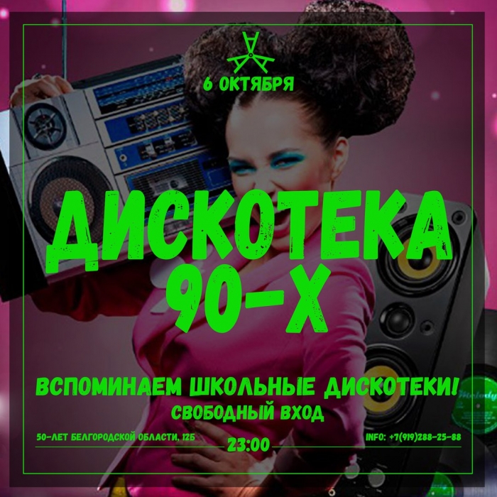 Сегодня, 6 октября, всех любителей поностальгировать под музыку 90-х, приглашают в 23:00. Там будут мотивы из школьных времен вперемешку с современными хитами.