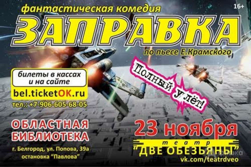 Белгородский театр «Две обезьяны» покажет пьесу Евгения Крамского. Но это не совсем пьеса, а скорее сериал или даже, как это выдумали в театре, космическая оперетта.