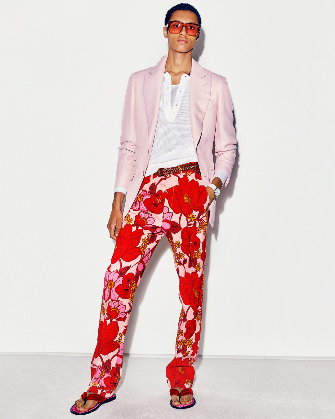 Что может быть сексуальнее мужчины в тотал-луке от Tom Ford? Пожалуй, ничего. И не нужно опасаться броского цветочного принта: главное, чтобы только одна вещь была акцентом лука. Например, брюки! А рубашка пусть остается белоснежной.