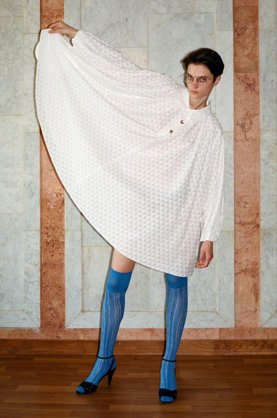 Арт-директором лукбука выступил сам создатель бренда Андрей Артемов, фотографом — Мария Попова (наше интервью с Марией можно почитать здесь). Съемка проходила в санатории «Марфинский» в Московской области.