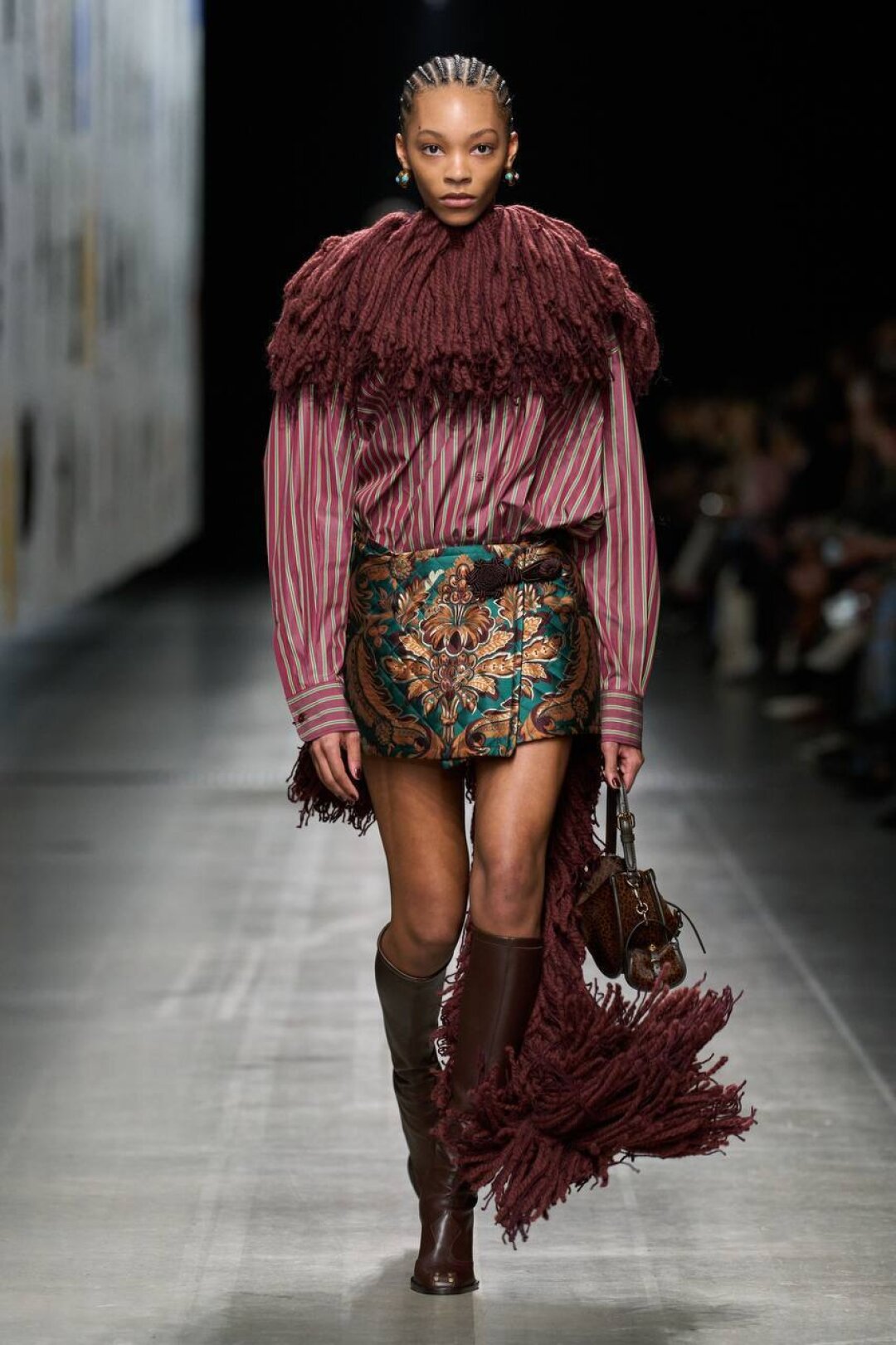Главные шарфы сезона — пушистые. Для своего последнего шоу в Marni Франческо Риссо сочинил гипертрофированные варианты из меха — носим поверх пальто на улице и в тандеме с жакетами и нарядными макси-платьями во время разгульных Champagne Weekend в культовом баре «Серж». Дэниел Ли для показа Burberry замиксовал ворсистый гранд-шарф с лаконичным трикотажным платьем, а в Emporio Armani поженили боа с бахромой — волосатое нечто дополнило вечерний сет из полупрозрачного топа и бархатных брюк (запоминаем лук для предновогоднего фэшн-марафона). В Stella McCartney и Etro интерпретировали тренд по-своему и предложили как следует утеплиться с помощью гигантских вязаных шарфов с энергично болтающимися пряжей.