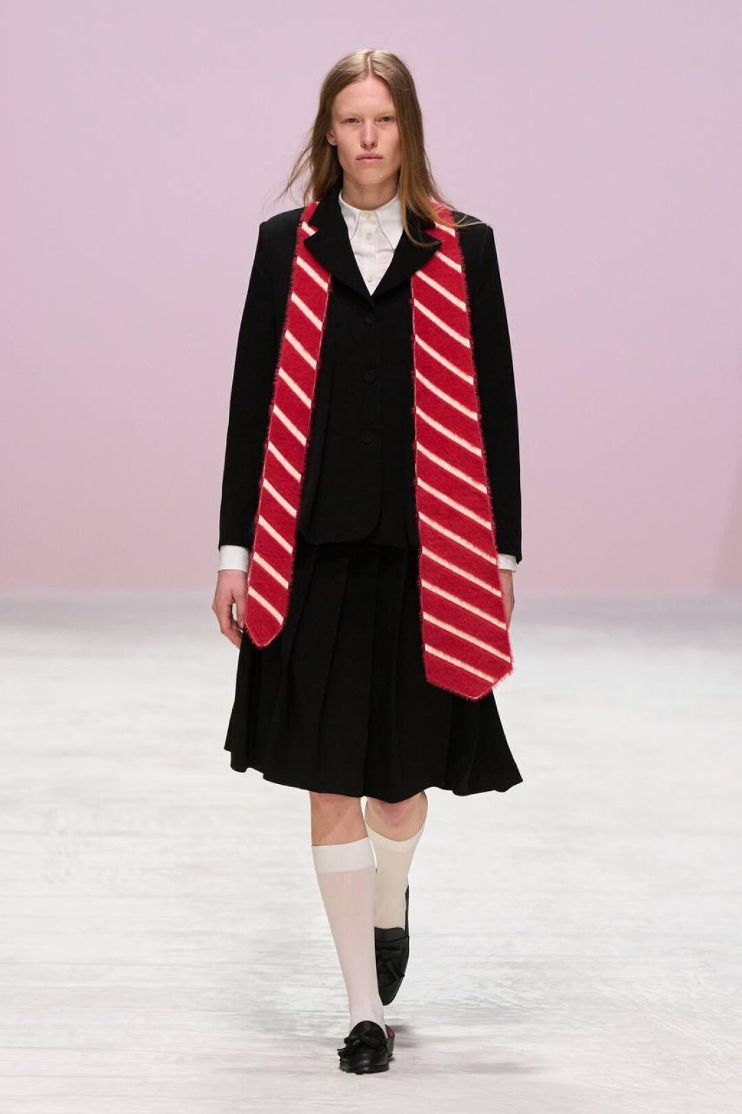 Серьезную конкуренцию им составили сюрреалистичные шарфы (или всё, что ими претворяется!). Так, на показе Vivetta увидели полосатый гибрид шарфа и галстука, в Coperni повязали вокруг шеи трикотажный джемпер, а сестры Олсен в The Row посоветовали рассмотреть на роль шарфа кашемировые колготки.