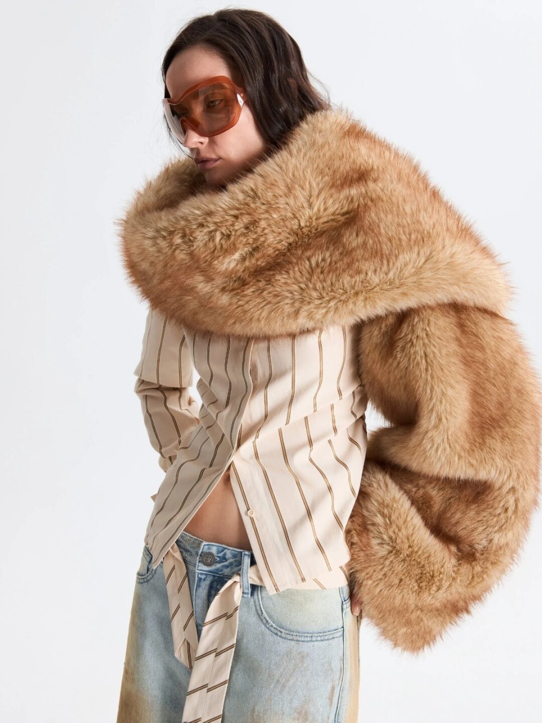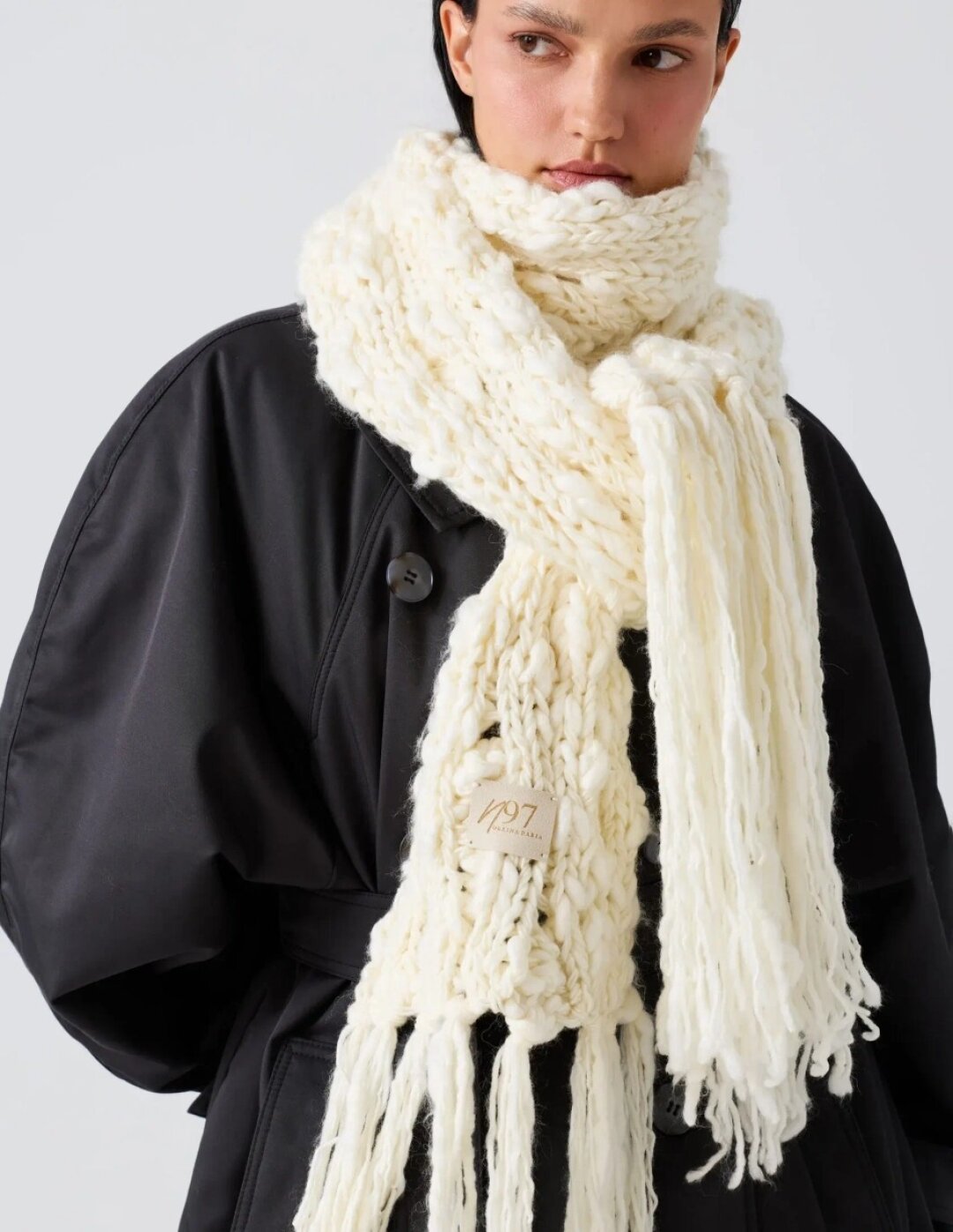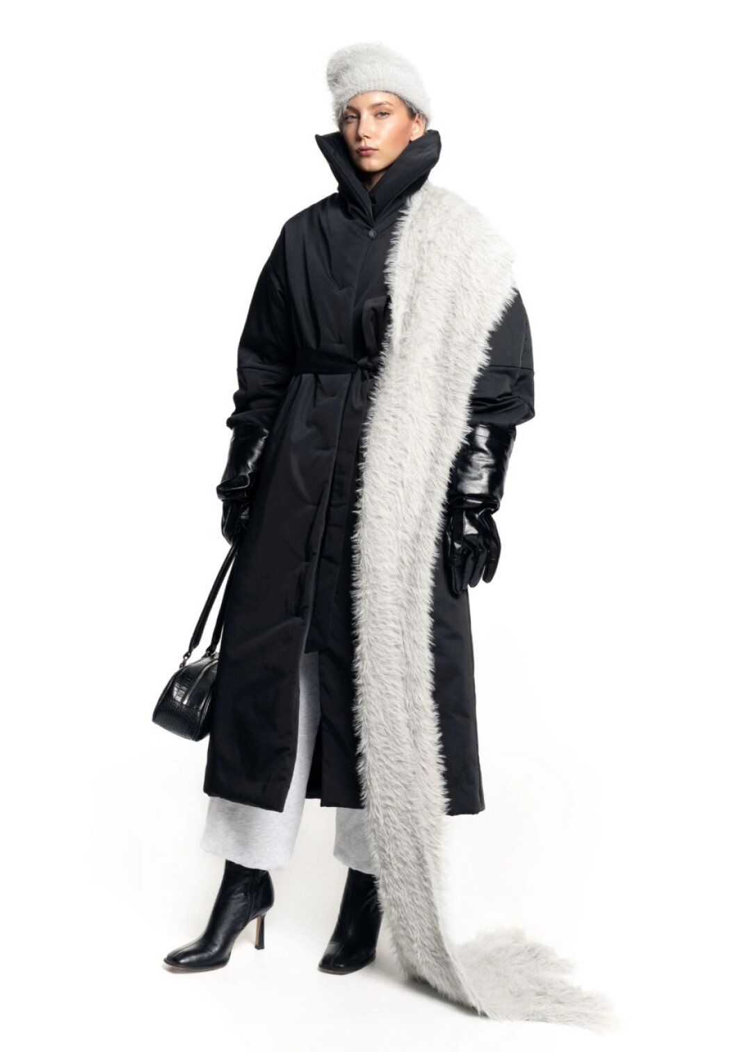 От пушистомании не спрятались и локальные бренды: MNRV показали фантазийный шарф-рукав, в Revalu отыскали классическую горжетку в необычном малиновом оттенке, за мохнатым аксессуаром в оттенке сладкой ваты выстраиваемся в очередь в Sorelle Era, а за базовым серым — в Asya Semyonova. Проповедуем фэшн-мультифункциональность и запасаемся шарфами с капюшонами Burberry (узнаваемый тартан в желтой палитре) и Free Age (в трендовую полоску), а еще примеряем оригинальный айтем Annuko, который сразу и шарф, и топ, и пелерина, и юбка.