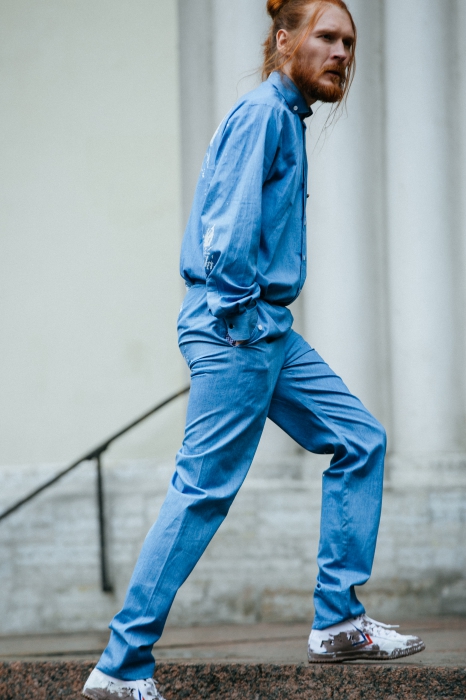 Лаконичная мужская коллекция молодого дизайнера Артема Шумова, показанная на Aurora Fashion Week, включает в себя базовый городской гардероб: сюда органично вписались плащи-халаты, широкие шорты на манер боксерских и пальто со следами от краски. Треники и свитшоты Шумов перевел в ранг вечерних, снабдив их жемчугом. Маст-хэв коллекции — кашемировые двусторонние плащи — подойдет как мужчинам, так и девушкам.