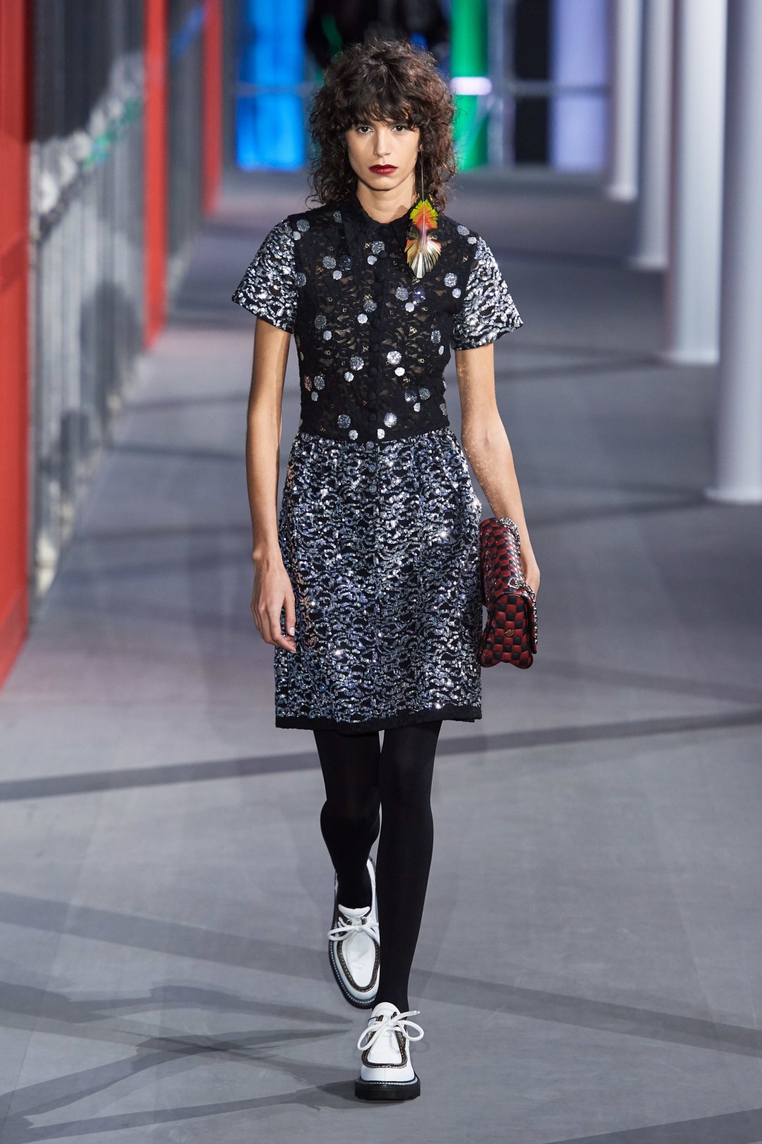 В Лувре прошел показ осенне-зимней коллекции Louis Vuitton, закрывший парижскую Неделю моды. Как объяснил креативный директор бренда Николя Гескьер, идея шоу — воссоздать «племена» и «субкультуры», разделявшие людей до того, как Instagram заставил всех выглядеть одинаково. Дизайнер продолжил добавлять к классическим вещам Louis Vuitton с монограммой индивидуальные, экстравагантные и вариативные элементы — будь то моносерьга в форме папоротника, плавательная шапочка из кожи или ремень с портретом в поп-арт стилистике.