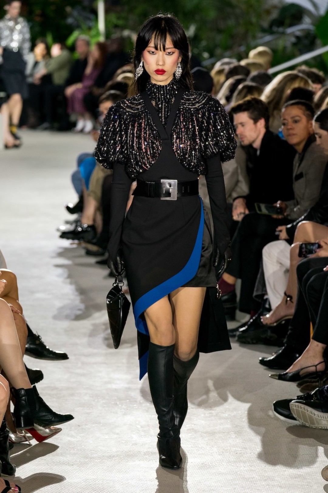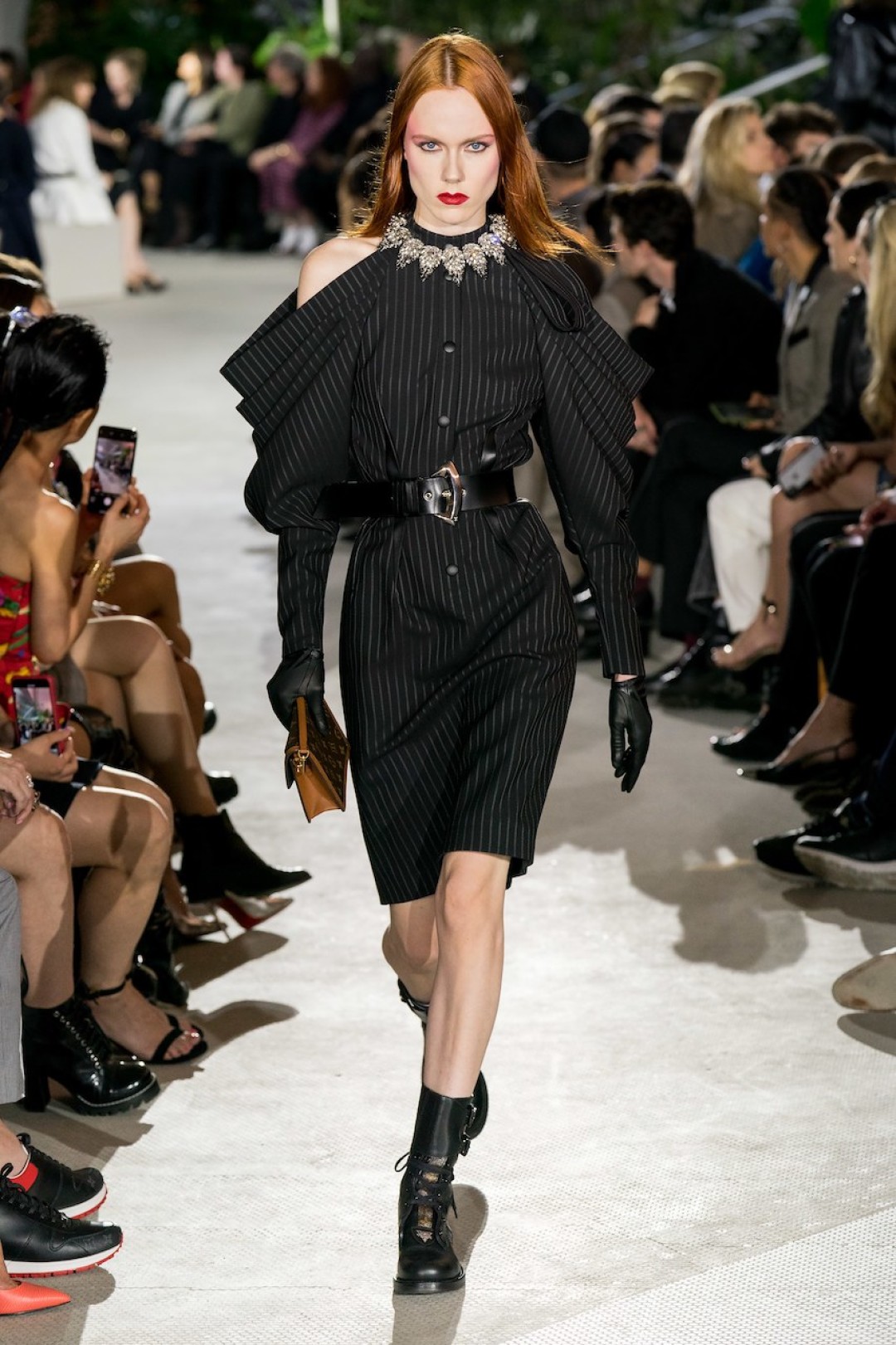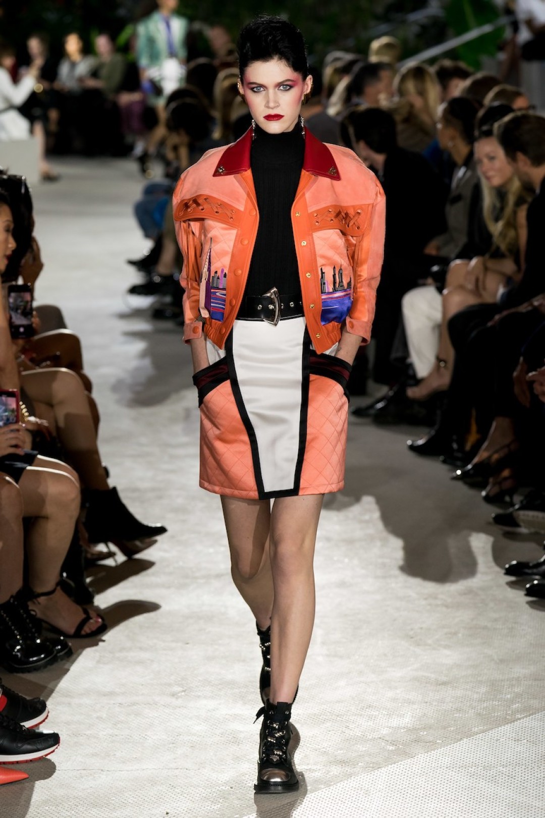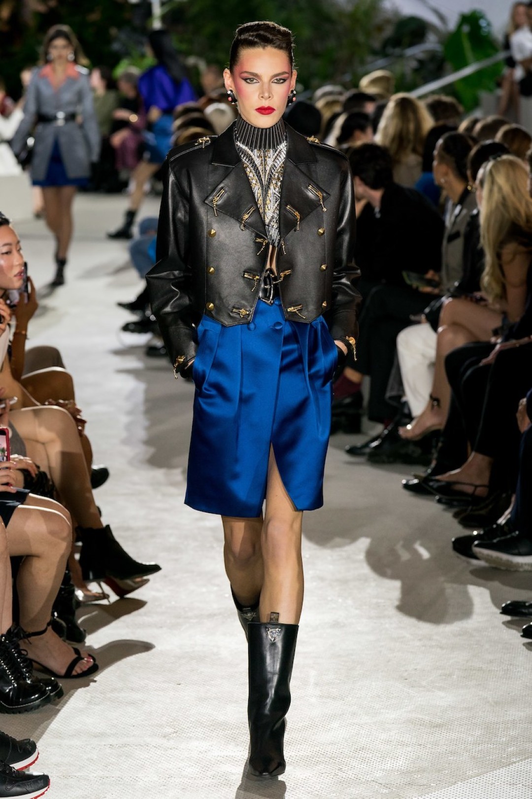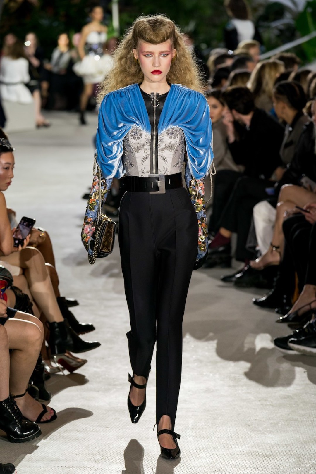 В аэропорту имени Джона Кеннеди в Нью-Йорке прошел показ коллекции Louis Vuitton Resort 2020. Креативный директор бренда Николя Гескьер продолжил рассуждать на тему 1980-х, взяв за основу фильм Ридли Скотта «Бегущий по лезвию». Полосатые костюмы, жакеты с покатыми плечами, взбитые локоны и яркий макияж напоминали главную героиню ленты Рейчел Роузен, роль которой гениально исполнила американская актриса Шон Янг.
