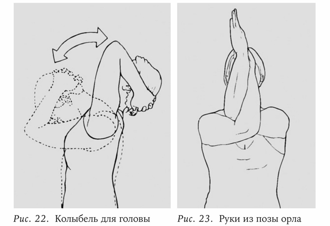 Добавьте упражнения «Колыбель для головы», «Руки из позы орла» (из позы гарудасана) и «Молитва с руками за спиной» (пашчима намаскара).