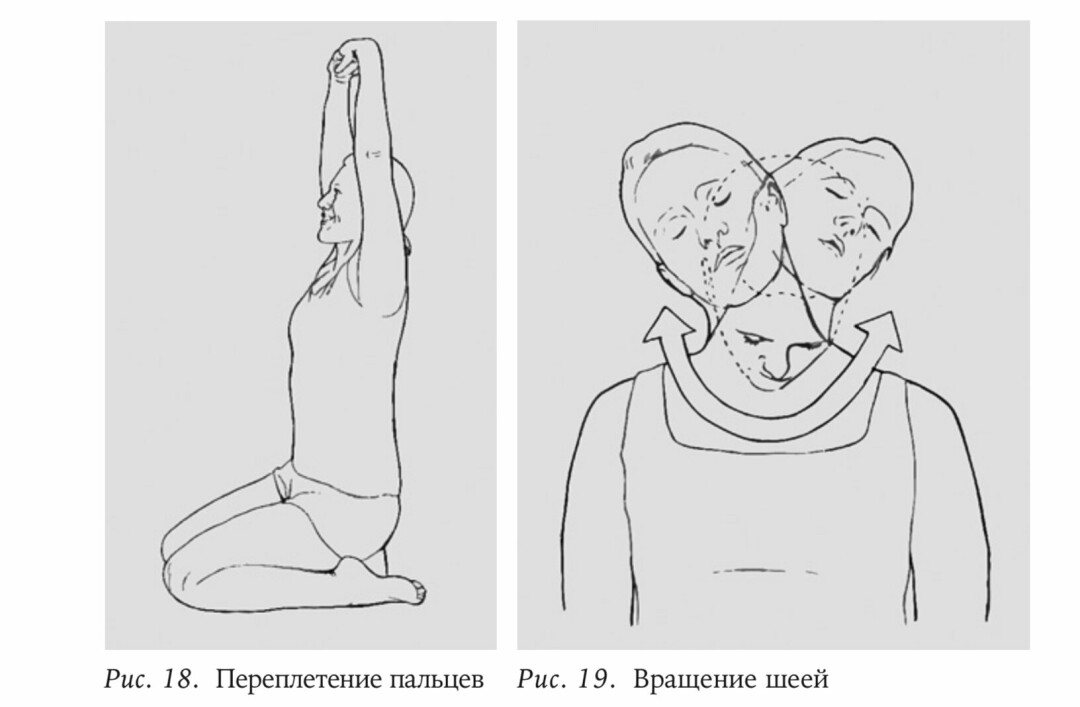 Добавьте упражнение «Переплетение пальцев» (в йоге эта асана называется баддхангулиасана) и вращение шеей.