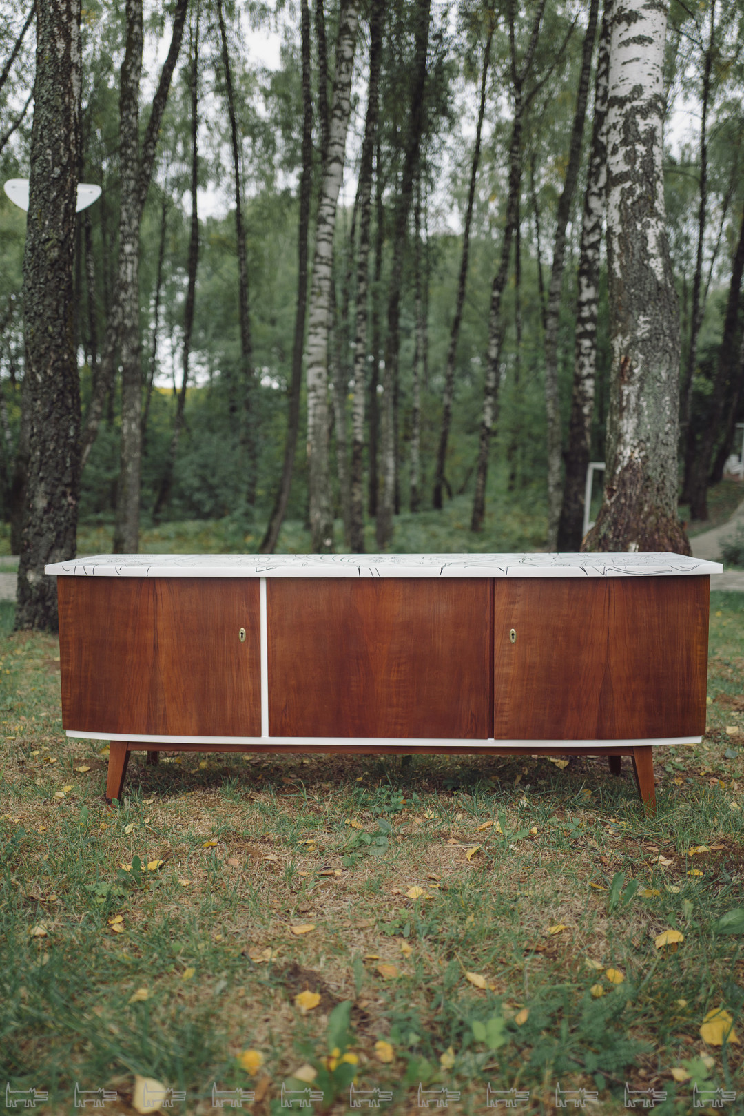 Реставрация подразумевает восстановление до первоначального вида, я отдаю предпочтение термину «реновация». Процесс для каждого предмета индивидуален. Например, немецкий комод 1968 года был буфетом. Исключив верхнюю часть, расширили практическое применение. Разобрали нижнюю часть, удалили старое покрытие, устранили повреждения, нанесли морилку и краску. Никита Ерохин, брянский татуировщик, выполнил рисунки акриловым маркером. Затем нанесли лак, отполировали оригинальную фурнитуру и собрали.