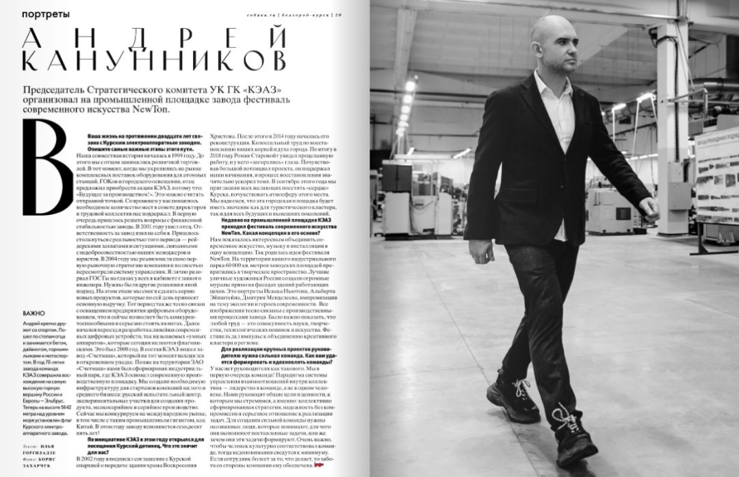 Андрей Канунников — председатель Стратегического комитета УК «КЭАЗ» организовал на промышленной площадке завода фестиваль современного искусства NewTon.