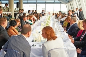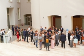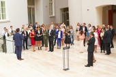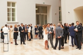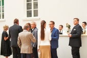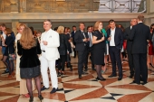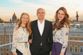 За день до официального открытия европейской биеннале современного искусства, проходящей на этот раз в Петербурге, состоялся прием французского шампанского дома Ruinart, который в этом году поддерживал экспозицию. После приветственного коктейля и предпоказа выставки в Эрмитаже, все собравшиеся отправились в отель на набережной реки Мойки. Гостям вечера, среди которых был директор Государственного Эрмитажа Михаил Пиотровский с женой Ириной и сыном Борисом, фотограф Юрий Молодковец, галеристки Айдан Салахова, Анна Нова и Марина Гисич, директор МАММ Ольга Свиблова и другие, представили так называемый ужин наоборот. Закуски подавались в виде десертов, а сладкие блюда с виду принимали за основное блюдо. Меню можно было прочесть только в зеркальном отражении. За музыкальное настроение вечера отвечала соул и джаз исполнительница Эми Питерс.