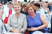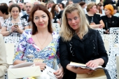 В субботу вечером во внутреннем пространстве Большого Гостиного двора собралось около четырехсот приглашенных. Сначала гости отправились на экскурсию в здание академии – флигель, отреставрированный архитектурной мастерской Никиты Явейна. В интерьерах все напоминает о Елене Васильевне: дочь передала в дар заведению книги, ноты, архивные записи и музыкальные инструменты матери, в том числе, четыре концертных рояля. На стенах – портреты и фрески с изображением певицы, например, во впечатляющем образе страстной Кармен (в день гибели Образцовой всемирно известный тенор Пласидо Доминго вспоминал ее именно такой и написал на своей странице в Facebook "Прощай, моя любимая Кармен!" на английском, испанском и русском языках). А в холле школы установили капсулу памяти с посланием Елены Образцовой.