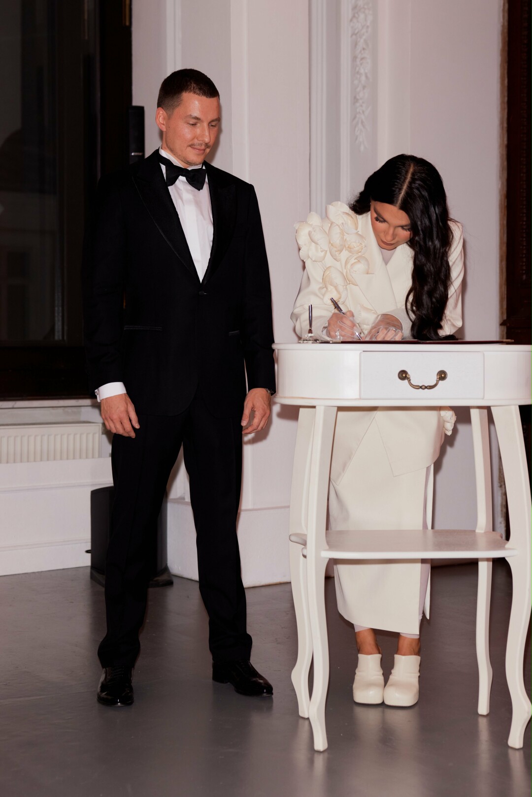 На регистрацию из Челябинска приехали все мои родственники кроме бабушки — она уже не может летать. Кроме того, мы позвали друзей. На церемонию смогли приехать: Денис Шевченко, основатель сети GATE31, Алексей Миронов, совладелец Department 57 и бренда Perque, галерист Полина Аскери, бывший главный редактор Vogue Ксения Соловьева, арти-директор бренда OLOLOL Алина Лаврентьева-Пак, блогер Диана Коркунова и другие. Несмотря на то, что удалось собрать не всех — многих приятелей раскидало по миру — была очень классная атмосфера, все искренне были за нас рады.