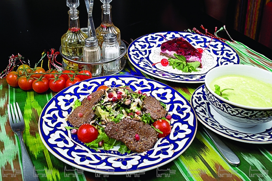 Этой весной шефы планируют удивить своих гостей новыми, яркими и вкуснейшими блюдами. Так что смело спрашивайте «Жаур Баур» - нежный шашлык из печени в жировой сетке, который подается с маринованным луком и соусом. Также стоит попробовать салаты «Карши» из сельдерея, винограда и куриной грудки и «Бухара», в котором микс зелени романо и рукколы отлично сочетается с обжаренным филе телятины, сухофруктами и заправкой бальзамическим соусом. Всем, кто не придерживается вегетарианства, понравится «Риштан», его сочный вкус и богатый аромат обжаренного до золотой корочки мяса, специи и овощей. Ну и, конечно же, будет странным не заказать коронное блюдо узбекской кухни – плов. Новинка – «Маизли Плов», он готовится из настоящего узбекского риса с добавлением сухофруктов: белого изюма, кураги, чернослива, обжаренной айвы и граната. Достойным завершением трапезы станет чай с десертом «Сказочный Восток»: это настоящее восточное лакомство из смеси орехов и меда.