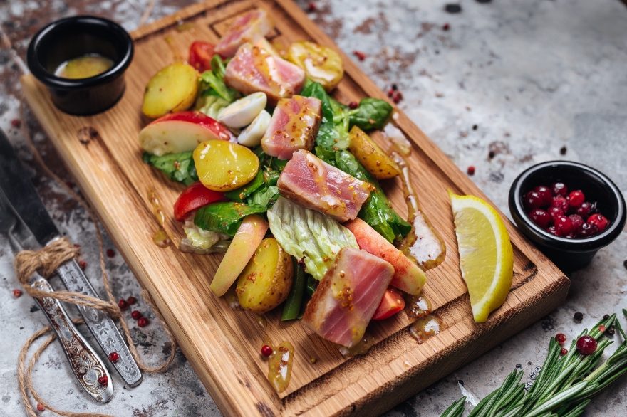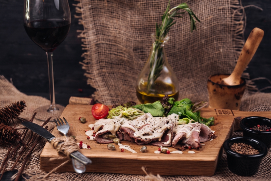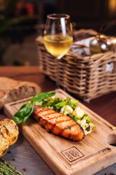 В меню присутствуют фирменные блюда – например, томленая в течение 15 часов телячья голень «Оссобуко». Особое внимание уделяется шашлыкам: из индейки со свежими овощами, из свинины с маринованным луком, каре ягненка. В планах заведения – запуск фермерских завтраков и ланчей, приготовленных из натуральной продукции с татарстанских полей и ферм; будет действовать дневная скидка.