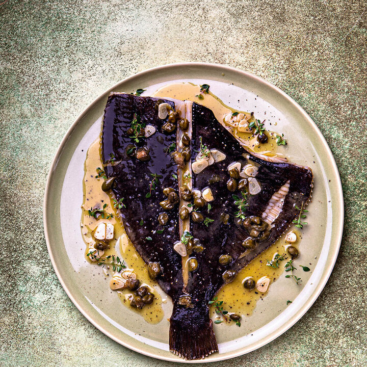 Запеченная камбала с каперсами от Тимофея Милюкова, бренд-шефа ресторанов Marso Polo, Saviv, Tel Aviv by Saviv, Москва, Санкт-Петербург