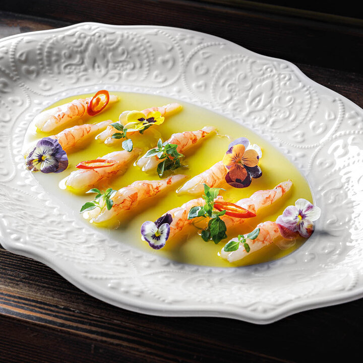 Крудо из креветок от Марко Якетты, бренд-шефа ресторанов La Scarpetta и Al Posto Giusto, Москва