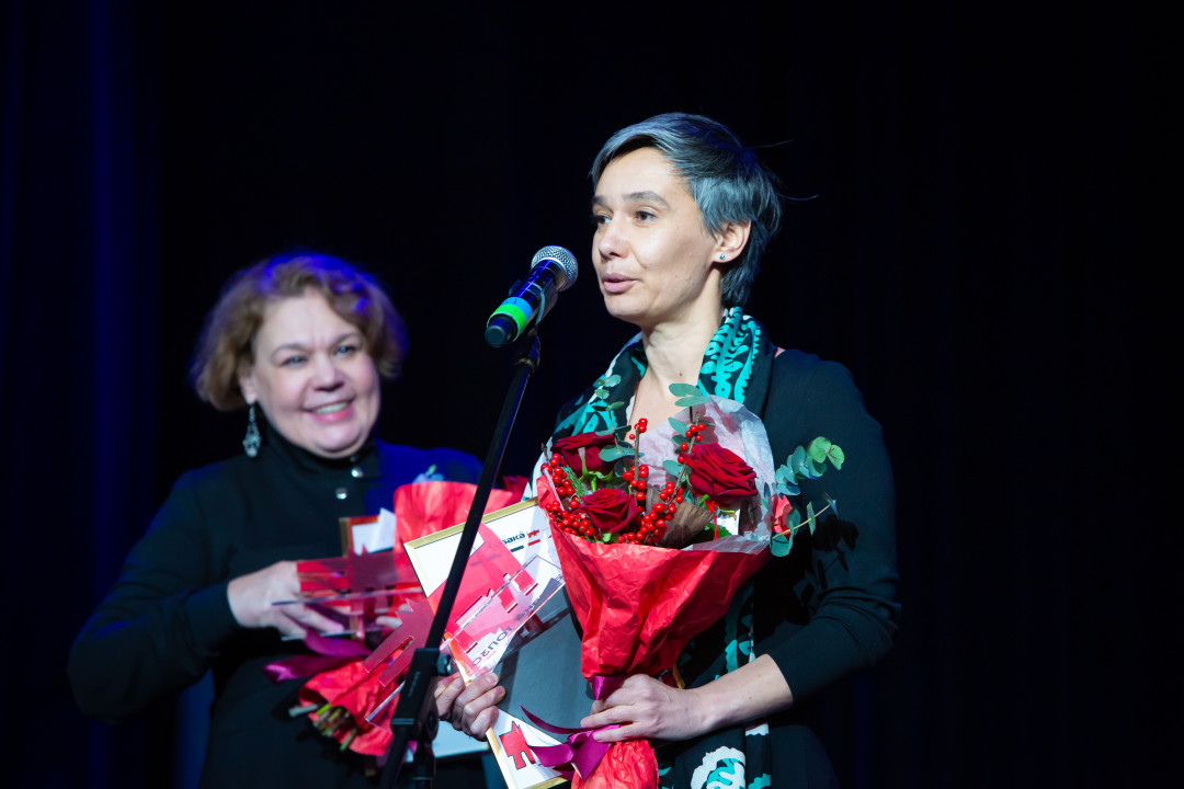 По уважительной причине отсутствовала одна из лауреатов премии в этой номинации – Гузель Яхина. В тот вечер она была на творческой встрече с читателями в Черногории. Но пришедшая получать награду ее мама Альфия Гильмутдиновна сразу же отправила дочери отчет о событии. А в ответ мы получили от Гузель благодарность за оказанную честь.