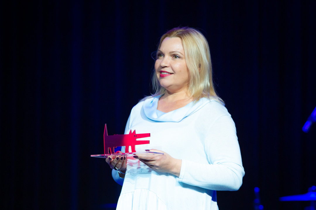 Дипломы и заветные фигурки красных «собак» им вручала актриса, певица, телеведущая, продюссер - Анна Кузьмина.