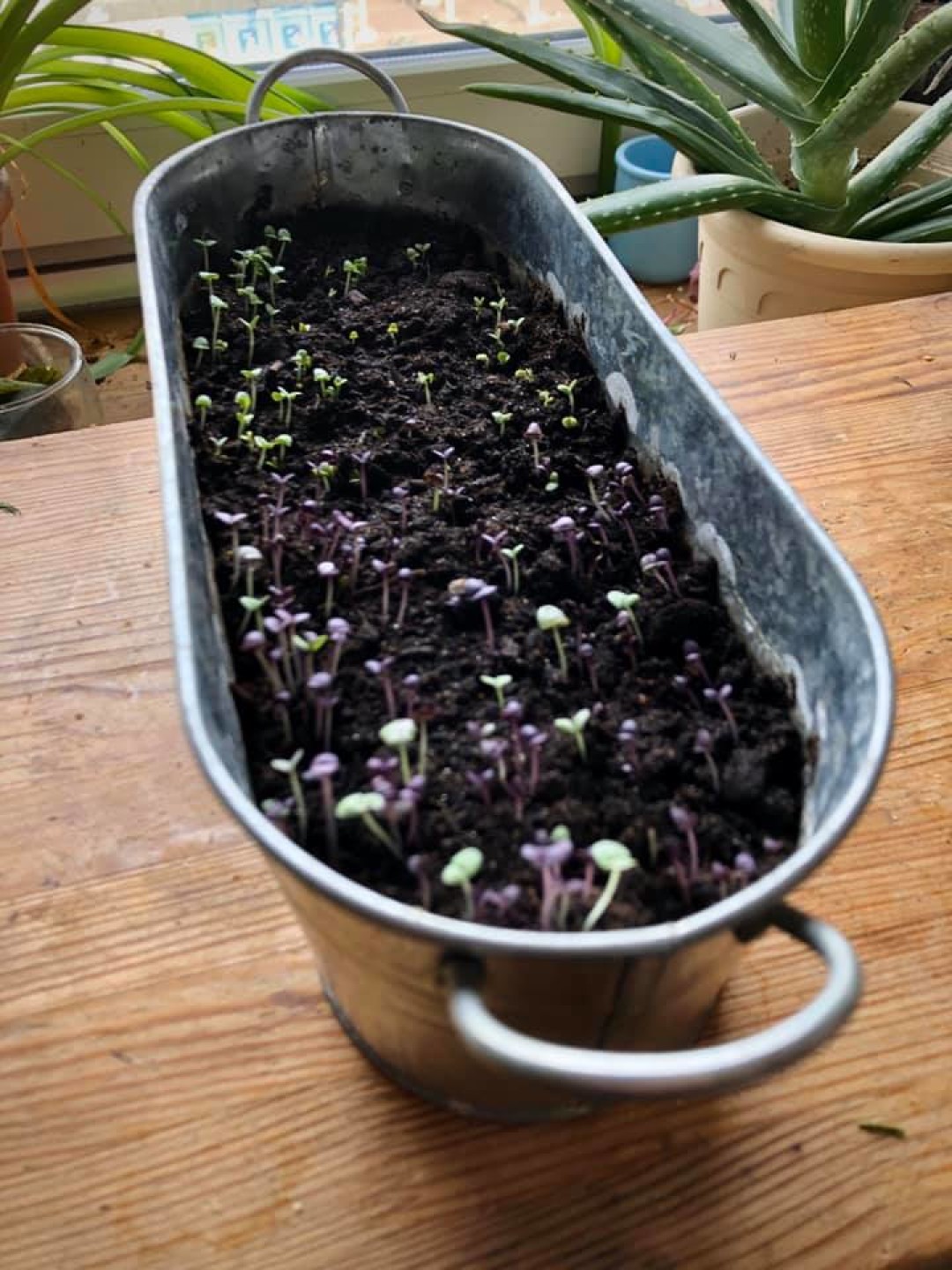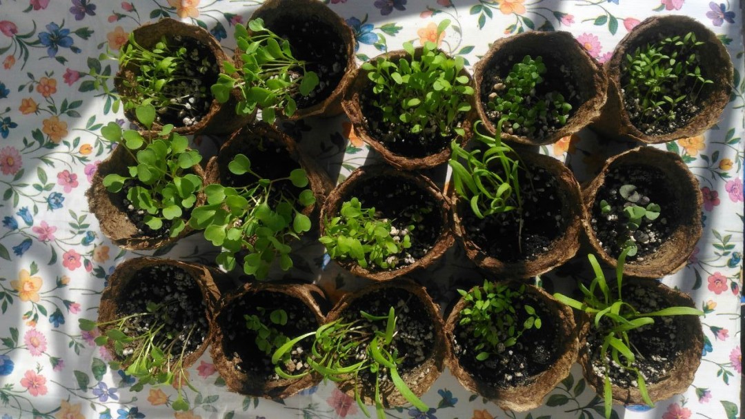 5. По мере прорастания трав и салатов (от 3-х дней до 2 недель), когда на улице ночью будет примерно 10–15 градусов (это обычно бывает в июне), их можно перемещать на балкон в большие кашпо и контейнеры с дренажом. И через неделю-две уже собирать урожай.