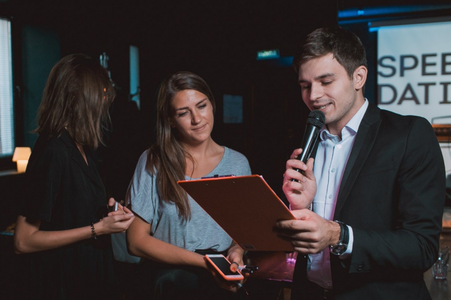 В каждом туре Speed Dating участвовало одновременно по семь пар, общение длилось по три минуты, после чего пары менялись и начинались новые беседы.