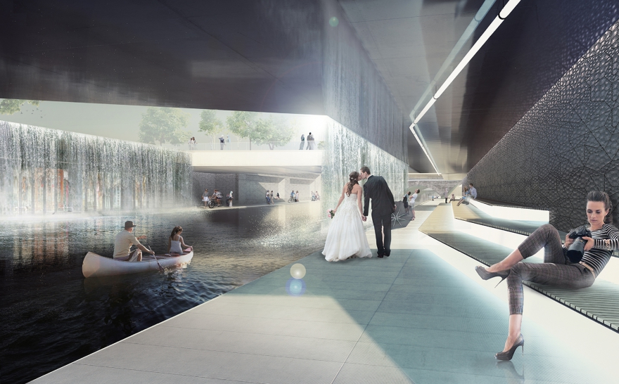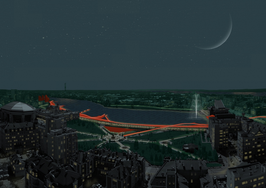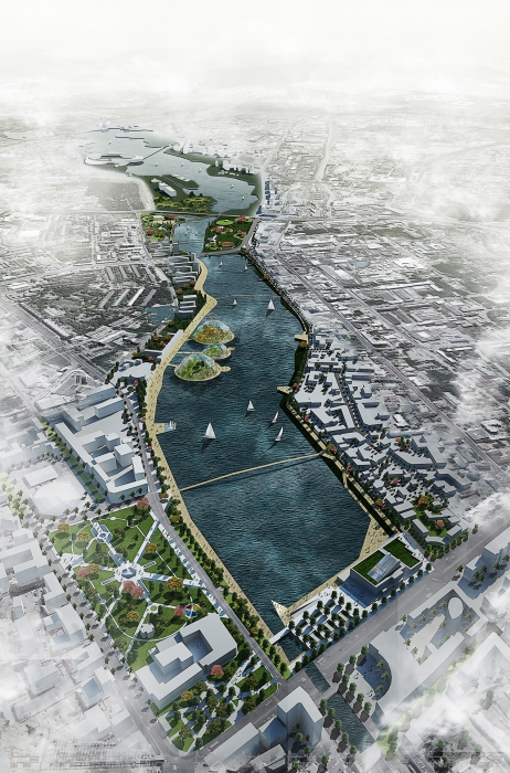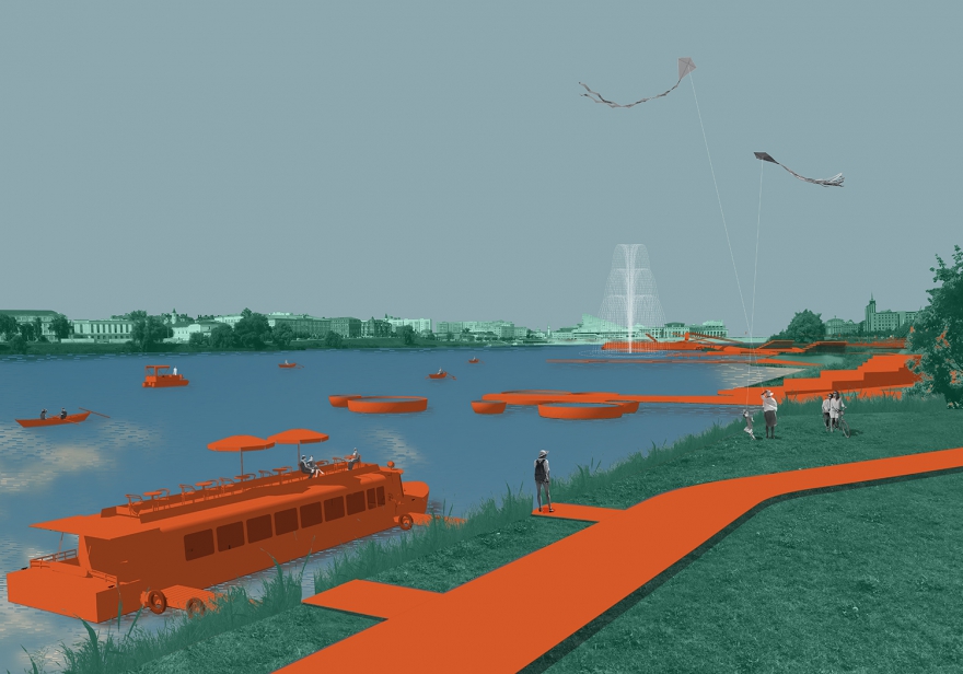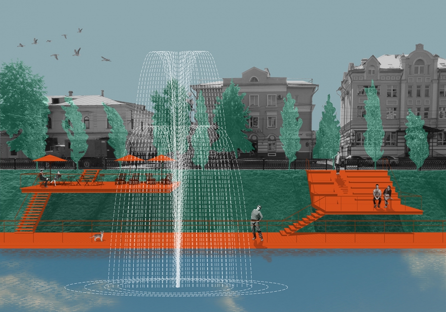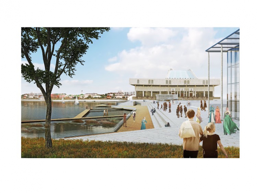 Победителем конкурса стал российско-китайский консорциум Turenscape + МАП. Азиатские проектировщики еще на стадии презентации себя казанцам полгода назад удивили комплексным подходом по регенерации природной среды, реализованным в их прошлых проектах. Среди всех проектов, возможно, именно они представили наиболее основательную экологическую стратегию регенерации места. В центре концепции, о чем много раз повторял представитель из Китая, чистая вода. Она сама по себе является сокровищем, которой обладала Казань на протяжении тысячелетней истории. Сообразно этому их проект называется «Эластичная среда: бессмертная легенда Казани».