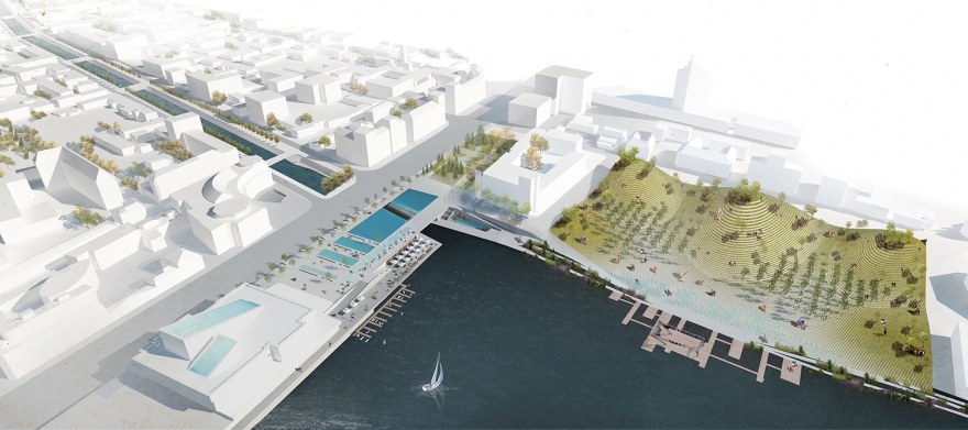 Концепция консорциума Groundlab + КБ23 (Великобритания - Россия) называется «Казанское ожерелье». Набережная подобно ожерелью свяжет разные части города и станет каркасом городской жизни, при этом оставаясь россыпью многофункциональных набережных.