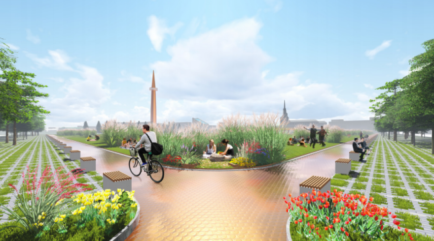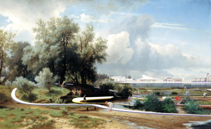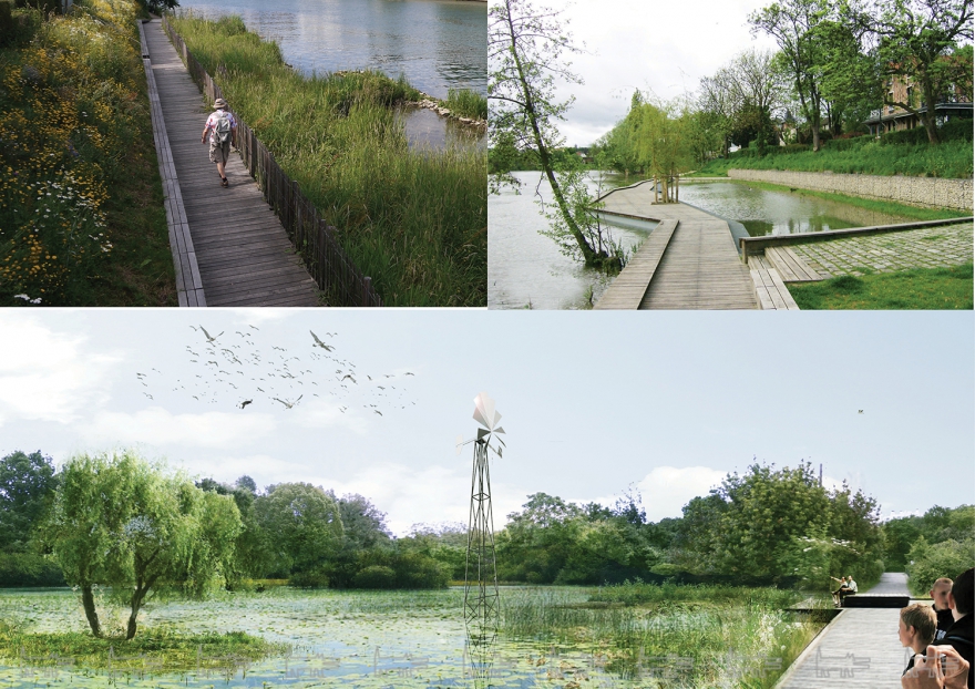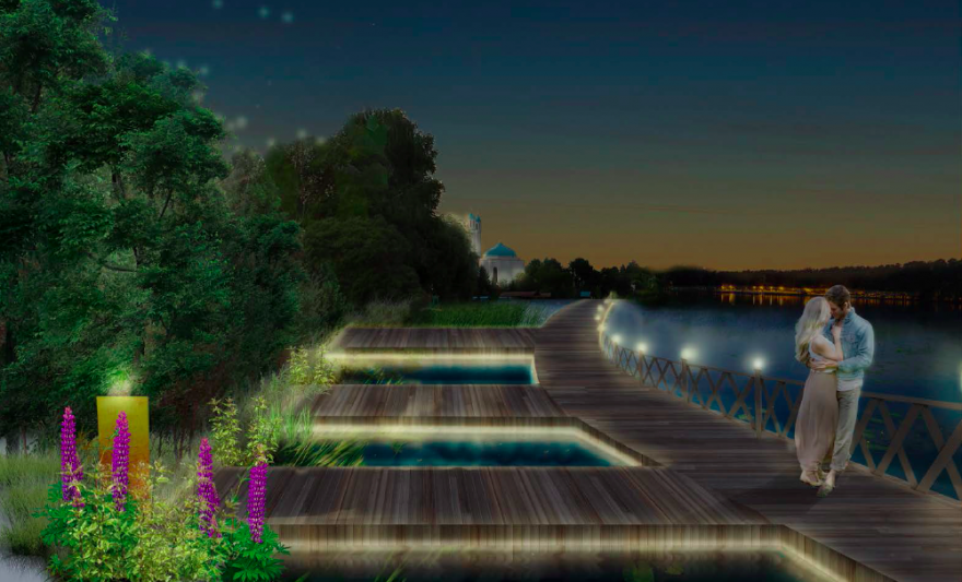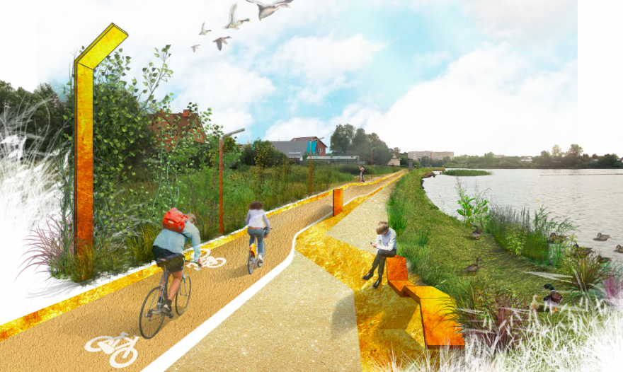 В центре проекта бюро MLA+ (Россия - Нидерланды) - идея связности. Они предложили самые скромные и экономичные решения, основанные на том, что уже есть на этой территории. Это, в частности, позволяет реализовать первые шаги уже в течение 1-2 лет. И бюро предложила новый бренд места - «Золотая лента».