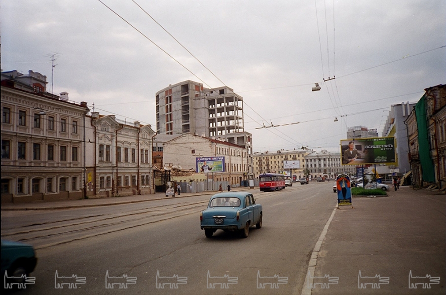 Тогда же трамвай ушел с современной Московской и Чернышевского на Саид-Галеева, хотя путь с вокзала к Ленинской дамбе был еще не в самом последнем варианте — трамвай шел по несуществующей теперь улице Кремлевской, проходившей между нынешним ЦУМом, которого тогда не было, и Дворцом Спорта, который старую схему движения трамвая застал, к Булаку, и далее по Ярмарочной площади мимо цирка.