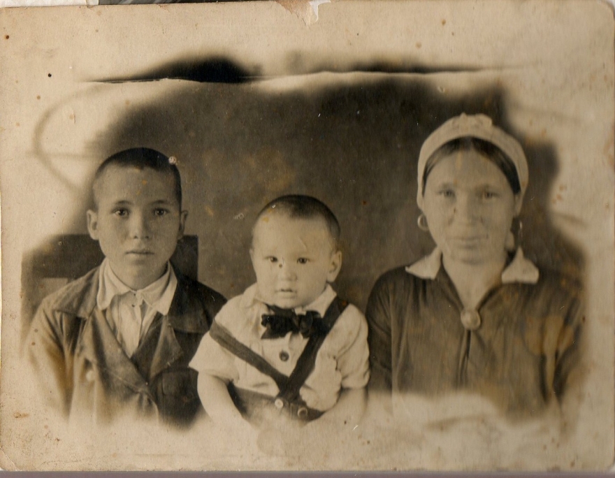 | «Сугыш ачлык белән башлана. Әти гаиләне ашатыр өчен, бер ашка булса да җитәр дип, эшләгән җиреннән бүрек астына яшереп, чи ит алып чыкмачы була. Ләкин аны чыкканда тоталар. Урладың дип, төрмәгә озаталар. 1941 елны төрмәдән туры сугышка китә. Сугыш булмаса, аны сөргенгә җибәргән булырлар иде. Әти Курс Дугасында минометчик була. Шулай бер көнне якын тирәдә генә мина шартлый. Командиры үлә, әти якын тирәдәге чокырга барып төшә. Аягы бик каты яралана. Ун ай Ташкентта ята. Шуннан туры өйгә кайта. Аягы аксый, тезе бөгелми торган була». | «Война начинается с голода. Отец, чтобы прокормить семью, чтобы хватило хотя бы на обед, спрятав под шапку, пытался протащить сырое мясо. Но его схватили. Обвинив в воровстве, его отправляют в тюрьму. В 1941 году он из тюрьмы отправляется на войну. Если бы не война, его бы отправили на каторгу. Он был минометчиком на Курской дуге. Однажды рядом с ним взорвалась мина. Командир умирает, отец падает в ближайшую яму. Ногу его сильно ранит. Он десять месяцев лежит в Ташкентте. Поэтому прямиком едет домой. Хромает, колено его не сгибается». |