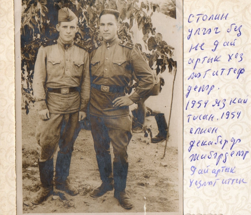 | Һөнәрне үзләштердем дигән дә генә, хәрби хезмәткә чакыралар. 1951 елны Самарканд шәһәренә хәрби хезмәткә китә. «Армиядә радистлык юнәлешен сайладым. Өч елдан соң кайтырга тиеш идек, хәрби хезмәтне тәмамлау – Сталинның үлү вакытына туры килде. Тагын бер ел хезмәткә калдырдылар. Шуннан соң да әле, килешү төзеп, әйдә кал дип әйткәннәр иде. Юк, өйгә кайтырга кирәк, әгәр эш таба алмасам, кире килермен дип кайтып киттем», - ди Минвәли бабай. | Когда, казалось, он уже обучился ремеслу, его призывают. В 1951 году он едет служить в Самарканд. «Я выбрал в армии быть радистом. Через три года мы должны были вернуться, по окончанию службы, это пришлось на смерть Сталина. Оставили служить еще год. После это предлагали, составив доровор, остаться. Нет, я ответил, мне надо домой, если не найду работу, вернусь», - говорит Минали бабай. |