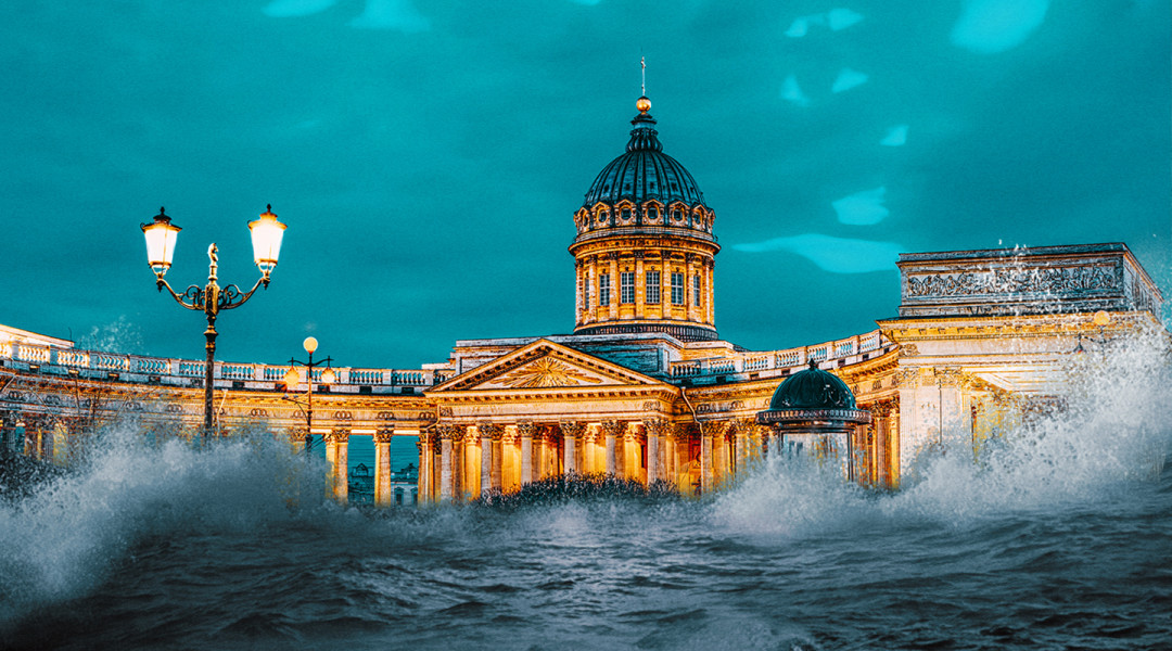 В отдаленной перспективе, если выбросы углекислого газа останутся на том же уровне, на городе может сказаться подъем уровня мирового океана. Хотя здесь Петербургу повезло — он стоит на постепенно приподнимающемся участке земной коры, что немного компенсирует складывающуюся ситуацию. Тем не менее, уже к концу века уровень воды может подняться на метр и выше.