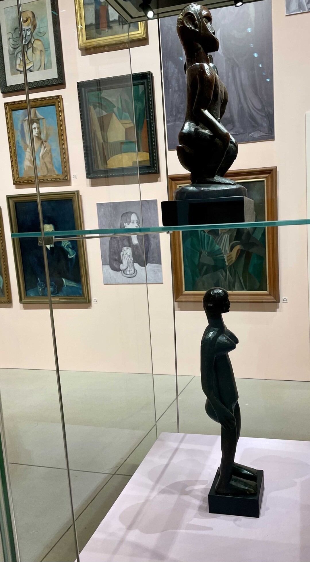 Работы Пикассо соседствовали в особняке с африканскими деревянными скульптурами. Они выставлены и в Эрмитаже, а вот картины доехали не все. Опять же из-за соображения сохранности, например, на выставку из соседнего Главного штаба не решились переместить работу «Свидание».