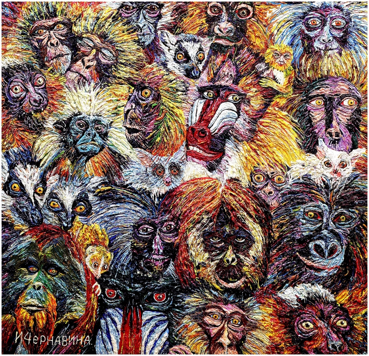 Ирина Чернавина – живописец и график, яркая, эпатажная художница со своим неповторимым стилем. Ее работы – оригинальный микс концептуальности, тонкого юмора, как в картине «По образу и подобию» и своеобразной техники мазка: часто полотно наводит на мысль о вышивке крестиком - без влияния отца-гобеленщика, как выясняется, не обошлось. Среди поклонников таланта Чернавиной тоже немало известных политиков, бизнесменов и деятелей искусства. Знаменита еще и тем, что студенткой вступила в союз художников России, став самым молодым его членом, а цикл картин ее картин однажды приобрели специально для съемок телевизионного сериала.