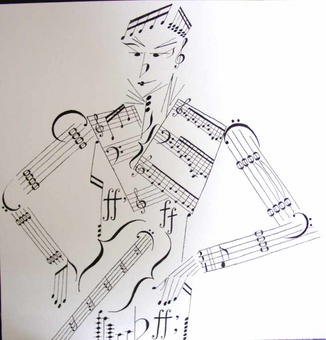 Этим синтетическим действом по си-минорной мессе Иоганна Себастьяна Баха отметил свой семидесятипятилетний юбилей великий танцовщик и хореограф Владимир Васильев. Так вот ошеломляюще мощный визуальный ряд этого спектакля и был построен на работах Светланы Богатырь. Более того, на пресс-конференции сам Васильев признался, что решение визуального оформления спектакля возникло у него именно после выставки этой художницы. Действительно, работы Богатырь поражают: цифры, ноты и знаки музыкальной графики причудливо сплетаются в портреты великих композиторов, образы ангелов, рыцарей, королев, мыслителей. Сама художница объясняет выбор столь необычного языка так: «Ноты в качестве «элементарных частиц», из которых строится образ, появились потому, что музыка – глубинный язык души. В ней – весь спектр свойственных человеку чувств. Число же – самая загадочная из всех человеческих идей. Оно реальность невидимого мира мысли, символ интеллекта и организованности Вселенной. Цифры же – это просто «портреты» чисел».