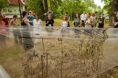 В сквере Баки Урманче было представлено два результата. Первый - кинопоказ по итогам резиденции режиссеров-документалистов на тему «Профессия экскурсовод». Участвовали в нем три автора. Один из идеологов самого проекта, казанец Михаил Колчин, взял чужое видео из Youtube, прорефлексировав на тему банальных травелогов от обывателей. Получилось, как минимум, смешно. Москвичка Наталья Касьянова, проведя несколько недель в поисках натуры, пошла в музей Благовещенского собора, где нашла фанатичных экскурсоводов, а также столкнула иноязычных туристов и примитивные туристические развлечения. Получилось и смешно, и драматично.
