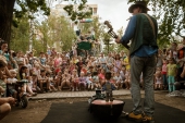 Итак, в Казани уличной культуры нет. Поэтому приходится привозить уличных кукловодов из других городов. И видно, что дети безумно радуются их появлению, будь то Владимир Нахимов с двойником по имени Антонио или музыкальные номера от Leo's marionette show. Должны ли появиться свои? То есть должен ли местный актер или энтузиаст, увидев происходящее, воспылать желанием выйти на Петербургскую? Или такого энтузиаста должна породить среда?