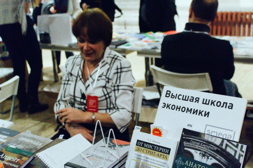 Как и прежде в первом зале работал книжный магазин ЦСК, который многие приняли за ту самую ярмарку, но даже его немалый ассортимент не мог сравниться с тем, что представили издательства. Ad Marginem, Tatlin, Strellka Press при институте «Стрелка» и многие другие продавали все,что сумели с собой привезти. Мусульманскую литературу научного и