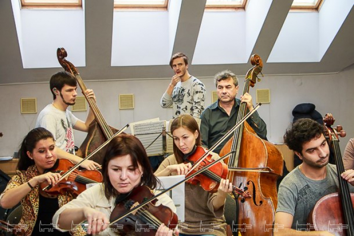 Отметим, что дирижер перед началом этой репетиции еще не слышал, что будет на концерте – он уезжал на несколько дней в Самару, и оркестр работал с Бурмистровым без него. Оркестровки написал виолончелист Ильяс Камал, которого можно смело считать соавтором Мити по программе. Студент казанской консерватории постоянно принимает участие в различных проектах. «Надо его обязательно представить на концерте», - замечает Абязов. «Конечно, купить ему самый дорогой билет. И дать выспаться», - отмечает Бурмистров.