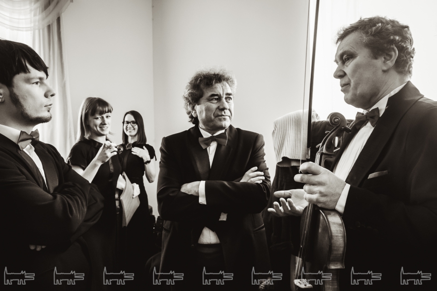 Это 21-й концерт и, как говорит директор Ульяна Луговцева, возможно, не последний. Лишь бы звали. Предыдущие проходили в ноябре-декабре - оркестр с утра садился в автобус и отправлялся, к примеру, в Ютазинский район. График - либо два концерта за день, либо четыре за два, с ночевкой. Каждый раз - в новой деревне. В основном - в сельских клубах. Почти все они похожи друг на друга. В нашем случае это небольшой зал, аккуратная сцена с симпатичным занавесом. Позади расположились бильярдный стол на неверных ножках, несколько тренажеров, домик из какого-то спектакля, стол для пинг-понга - практически все музыканты, наевшись пирожков с мясом и картошкой, разбирают по интересам. Вскоре они лихо, но с достоинством переодеваются в официальное в гримерке. На дверях дома культуры значит - «Ансамбль живой музыки «La Primavera» - «Весна». Среди клубов - актерского мастерства «Сказочный ларец» и женский клуб любителей здорового образа жизни «Тонус».