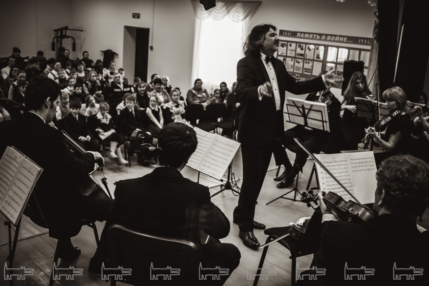 Концерт, конечно же, организован с помощью администрации района. Проходит он в час дня. Основная масса - школьники, из русских и татарских школ (то же национальное сочетание и среди взрослых). Девочки приходят в школьной форме, мальчики одеты более свободно. Единственный серьезный парень в очках орудует HD-камерой, которую цепляет на велотренажер, а потом обещает выложить все на личный Youtube-канал («Сейчас там ничего нет»). На заднем ряду девочки снимают все на планшет, показывая пальцем на контрабасиста Игоря Завадского, самого неформального в коллективе - с туннелями в ушах.