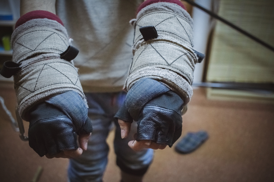 «КЗН.Собака.ru» опробовала на себе славянский тренажер «ПравИло», снимающий мышечные блоки. За ноги и руки подвесили главного редактора.