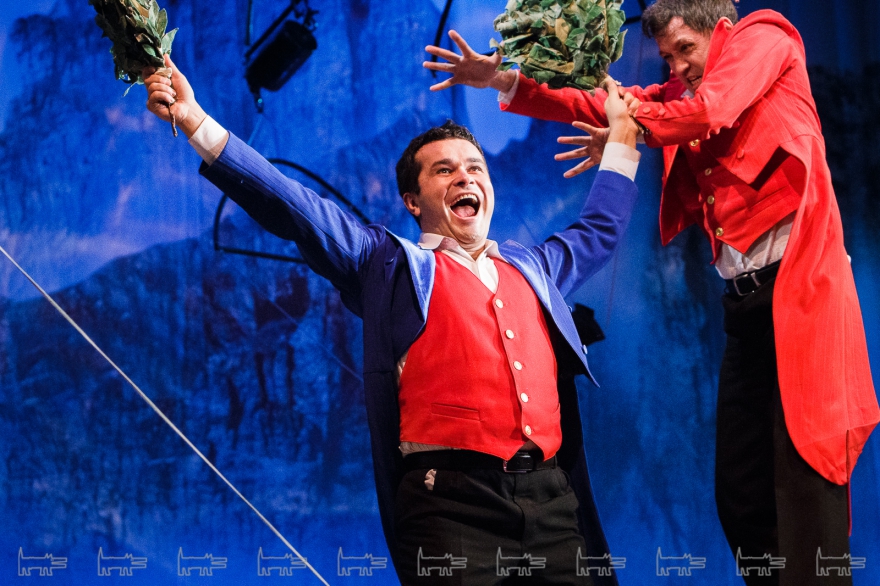 Для автора вообще не важны те, кто вне сцены веселится. Только те, что таскают креветок и шампанское. Во многое его мысли пересекаются с идеями, озвученными в прошлом сезоне в «Ходже Насретдине», где толпа, получившая право голоса, не выбирает ничего лучшего, как попросить еще больше худшей доли.