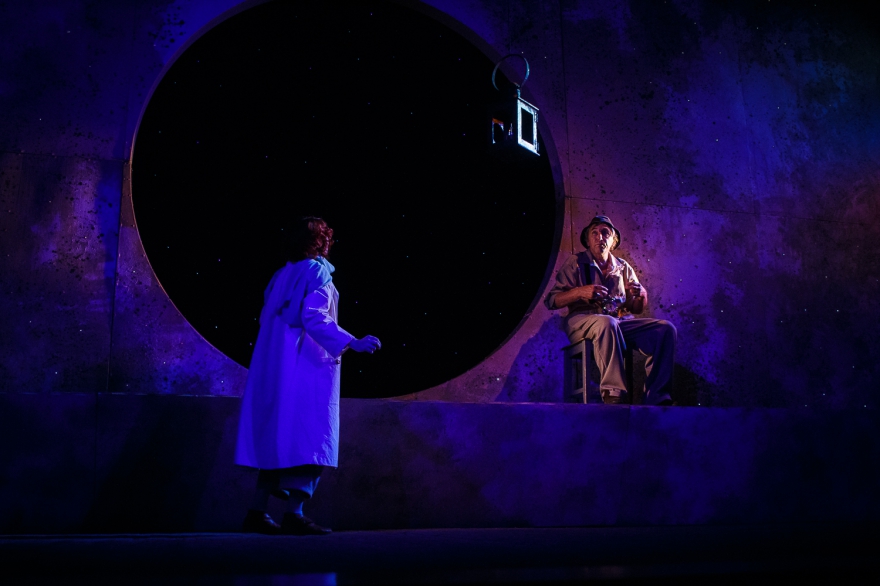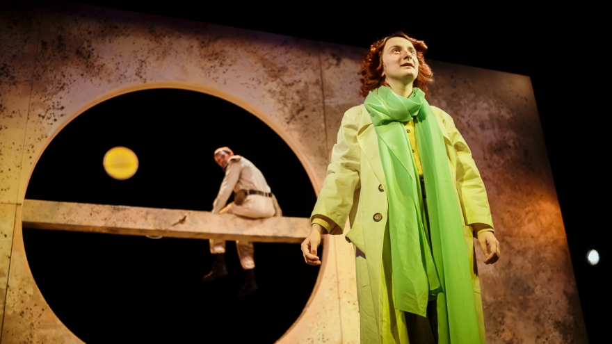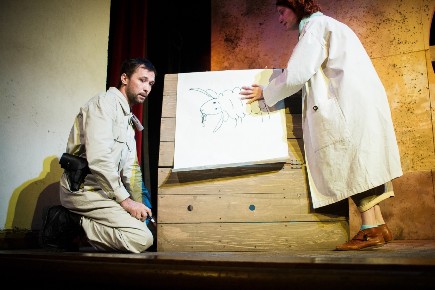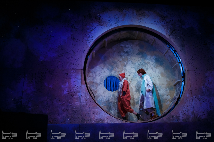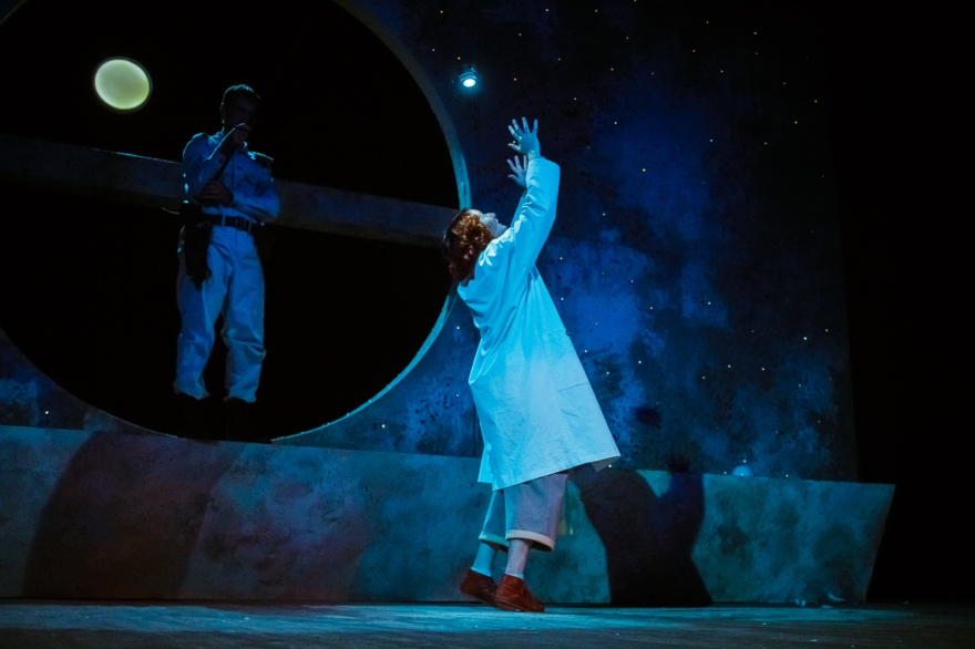 Елена Качиашвили, пришедшая в труппу год назад, верна амплуа простодушного подростка (даже в недавнем эскизе в рамках лаборатории «Город Арт-подготовка» она подала любовный конфликт в эффектной молодежной манере). По сути, ей и не надо играть, она может существовать в своем наивном, с широко распахнутыми глазами, образе. При этом не складывается их дуэт с Летчиком (Павел Густов), который, кажется, только и нужен, чтобы таскать ее на плечах, изображая космические полеты между планетами. Что он понял в конце спектакля? Что еще больше устал?